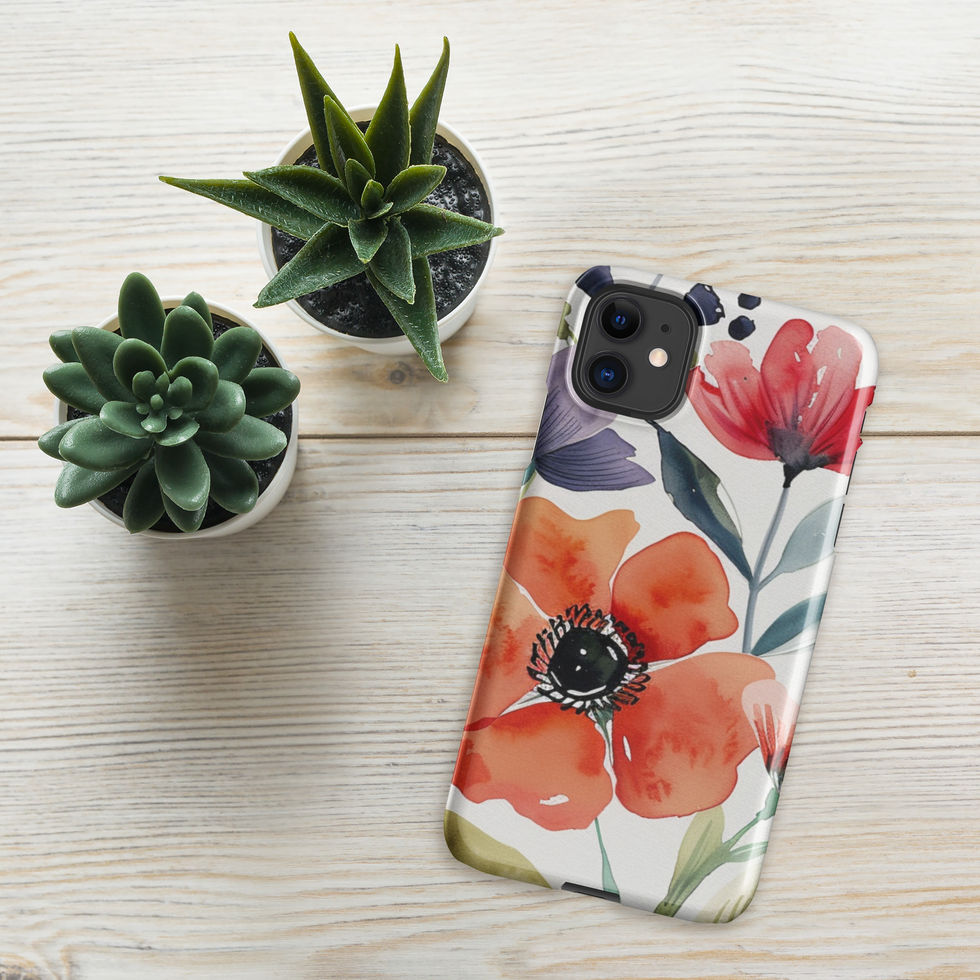 Grounded, rich, and refined—the "Autumn Petal Poise" Snap Case captures the quiet strength of seasonal change. With layered florals in terracotta, crimson, ochre and midnight blue, this case brings painterly depth to your phone. It’s slim, stylish and packed with earthy charm—perfect for iPhones that embrace warmth and elegance in one go. 🍂🎨📱