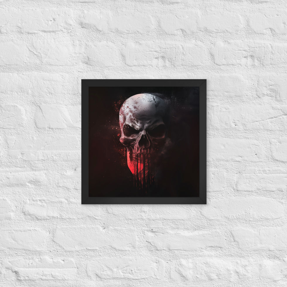 Make a bold statement with Bloodshadow on a framed poster. A skull cloaked in red and shadow is preserved behind sleek acrylic, creating an enduring symbol of fury and decay.