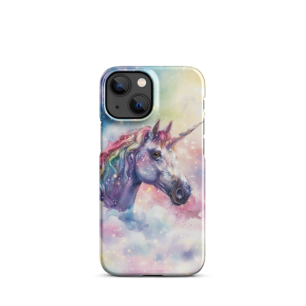 Step into a world of wonder with the Celestial Dreamscape Snap Case for iPhone®! Featuring a breathtaking unicorn emerging from a mist of cosmic clouds, this case blends fantasy and elegance effortlessly. The pastel hues and twinkling stardust create a magical aura, making your phone shine with celestial charm. 🌈🌠