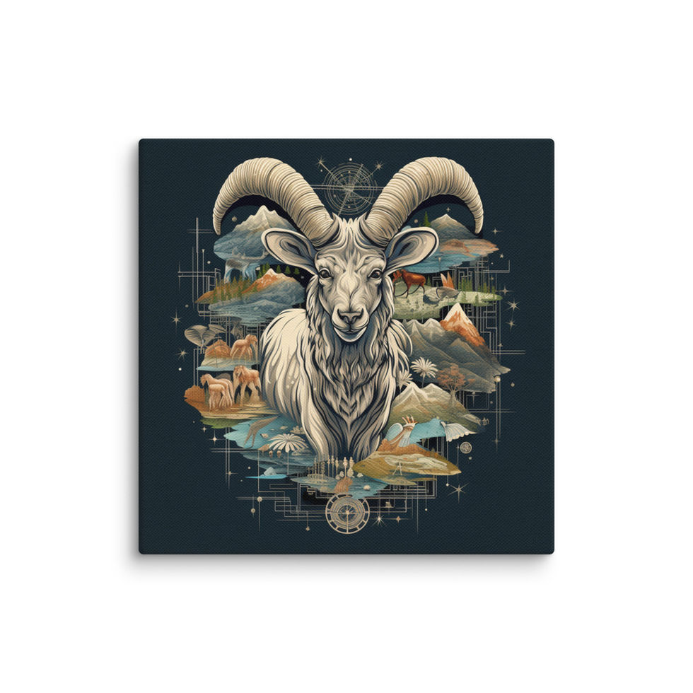 Infuse your space with majestic presence through "Celestial Nomad", a canvas print that honours the harmony between wilderness and cosmos. A powerful depiction of the ram, surrounded by dreamlike landscapes, perfect for any statement wall.
