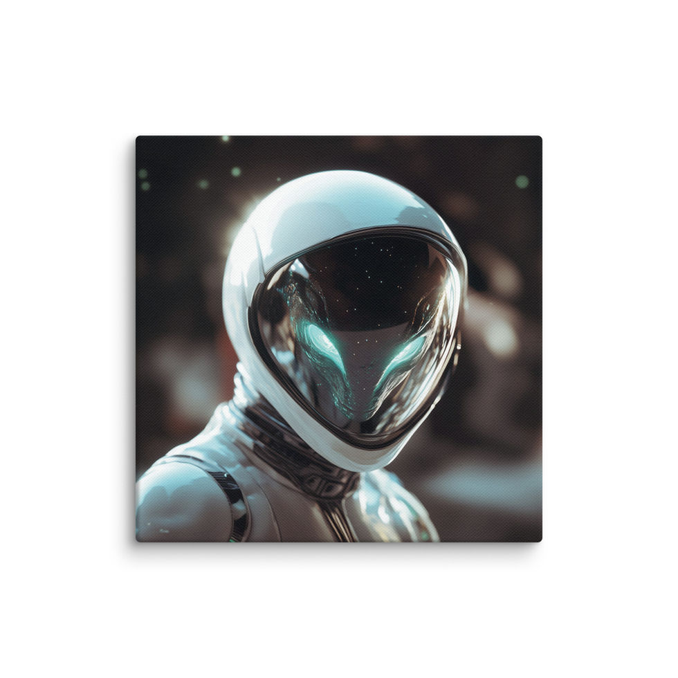 Unleash your imagination with this sleek and captivating artwork "Celestial Sentinel" Futuristic Artwork Canvas Print, featuring a futuristic astronaut helmet reflecting the glowing, ethereal gaze of an alien entity. The blend of cutting-edge design and cosmic mystery creates a compelling visual that bridges the gap between humanity and the unknown.