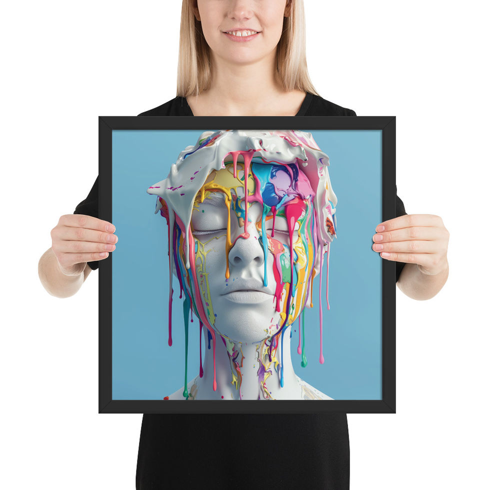 Immerse yourself in the bold and surreal beauty of "Chromatic Awakening", a stunning framed poster that captures the essence of artistic expression. Featuring a sculpted white figure drenched in cascading multicoloured paint, this piece embodies fluid creativity and modern sophistication—perfect for any contemporary space! ✨🔥