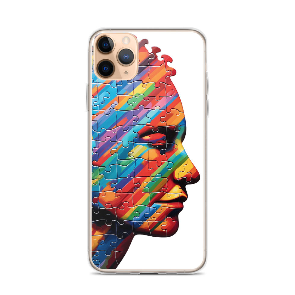 Let your iPhone�s sleek design shine through while embracing the radiant artistry of "Fragmented Spectrum"! This transparent case highlights a stunning human profile sculpted from puzzle pieces, each fragment painted in luminous gradients of blue, red, and gold. The seamless blend of colour and contrast creates a dynamic interplay of movement and form, while the puzzle's incomplete edges add an element of curiosity and wonder. The clear background ensures that this vivid design integrates effortlessly with your device, offering a modern and artistic aesthetic. ??????