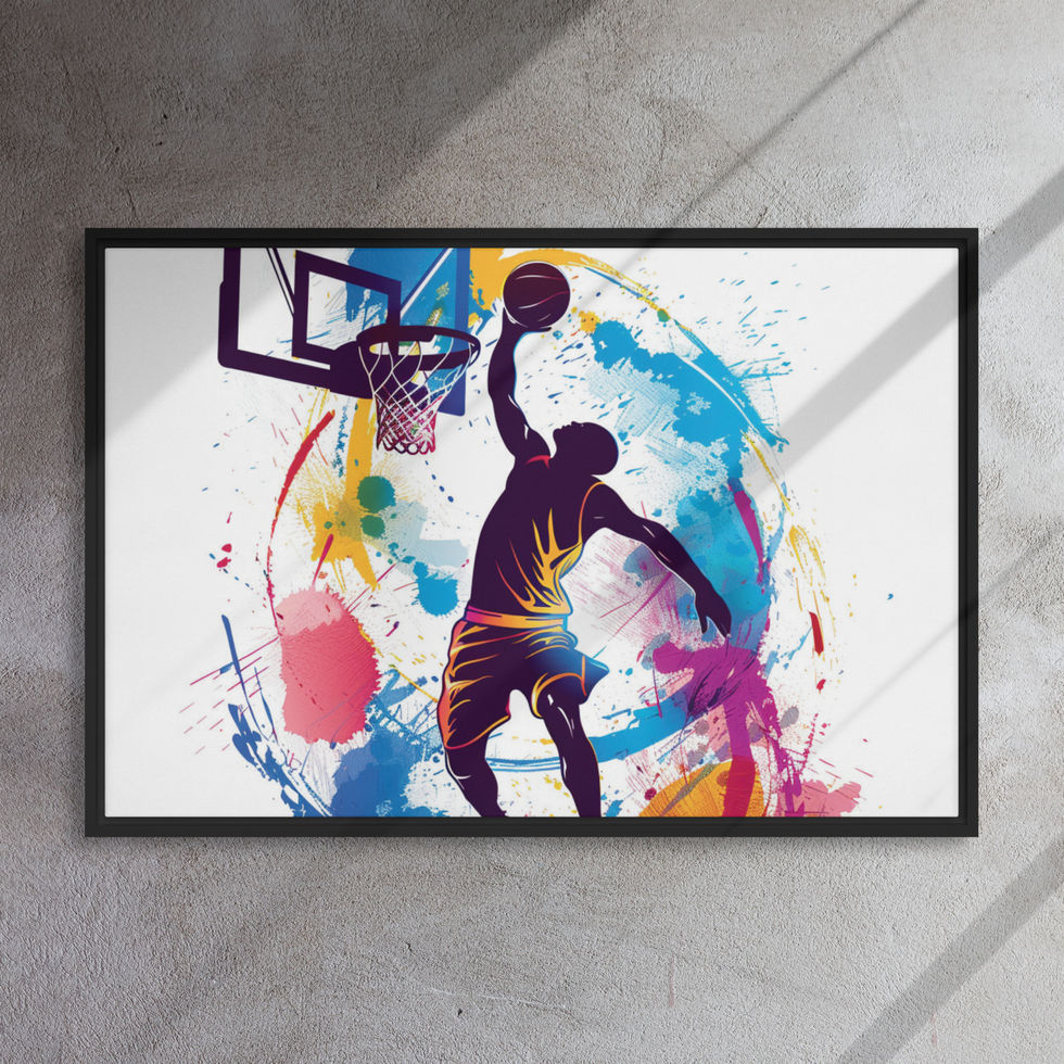 Transform your walls with the "Colour Splash Dunk" framed canvas. Order now and bring the action of the game into your home! 🏀🔥