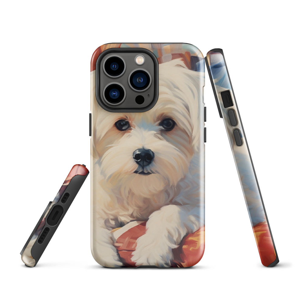 Keep your phone safe and stylish with the "Cozy Pup" Tough Case! This one-of-a-kind design features a fluffy white pup lounging on a pile of colourful, textured cushions, bringing a painterly touch to your everyday essentials. Blending warmth, softness, and artistic expression, this case is the perfect mix of protection and charm. 🐶🎨🛋️