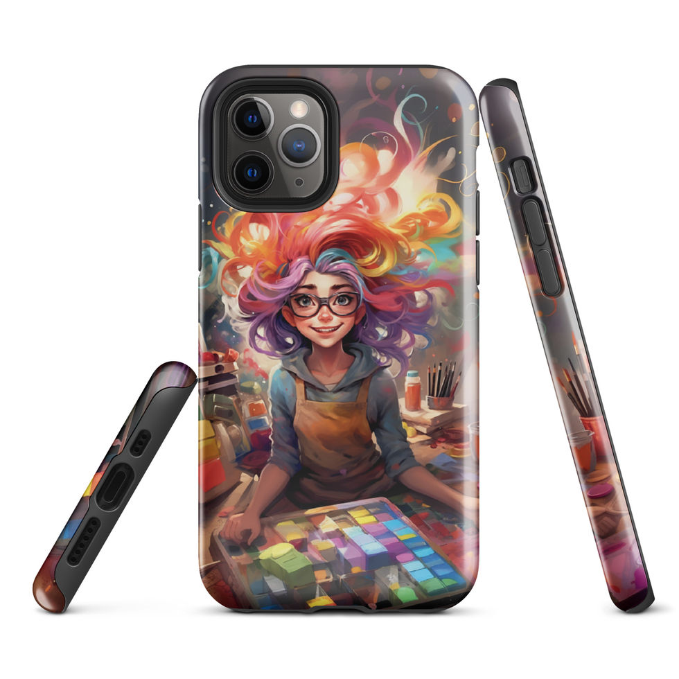 Transform your iPhone into a masterpiece with the "Creative Sparks" Tough Case! Featuring a beaming young artist in a paint-splattered apron, her rainbow-coloured hair igniting like a burst of neon flames, this design celebrates the magic of creative expression. With art supplies scattered around her, glowing palettes, and splashes of paint in every direction, this case is a must-have for those who embrace the beauty of imagination. 🎧🌟🎨