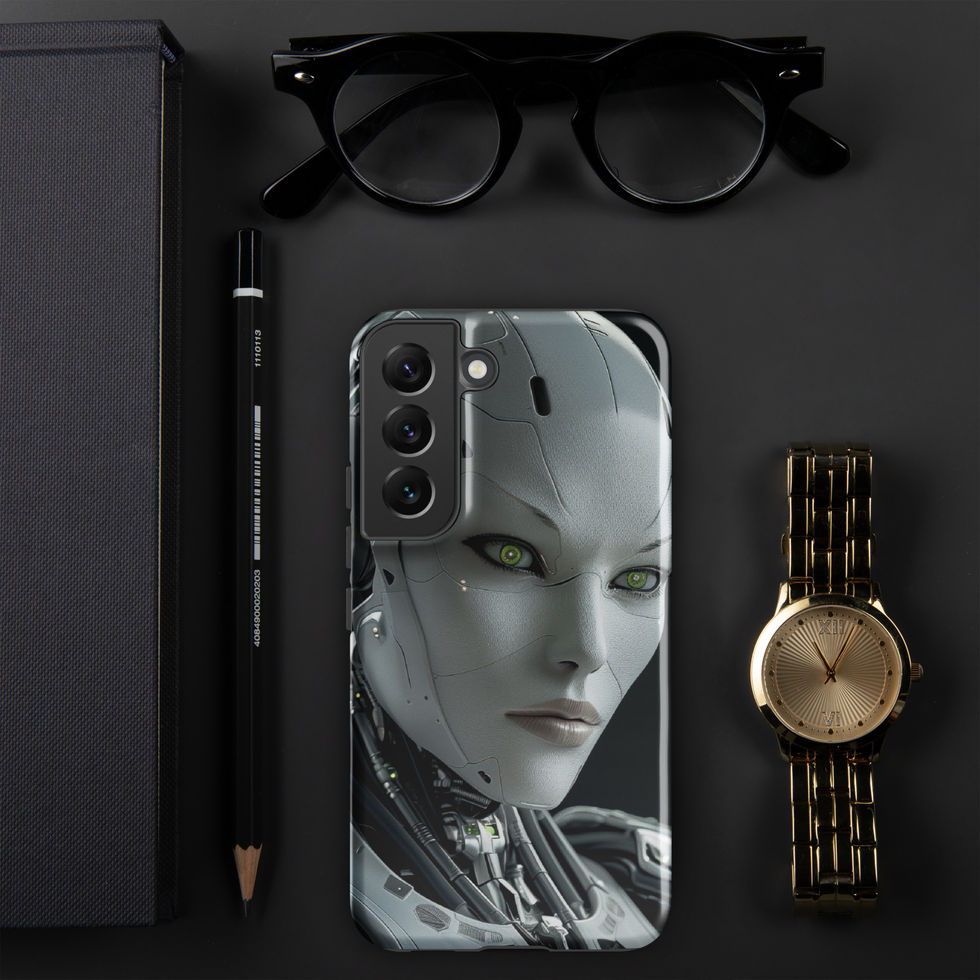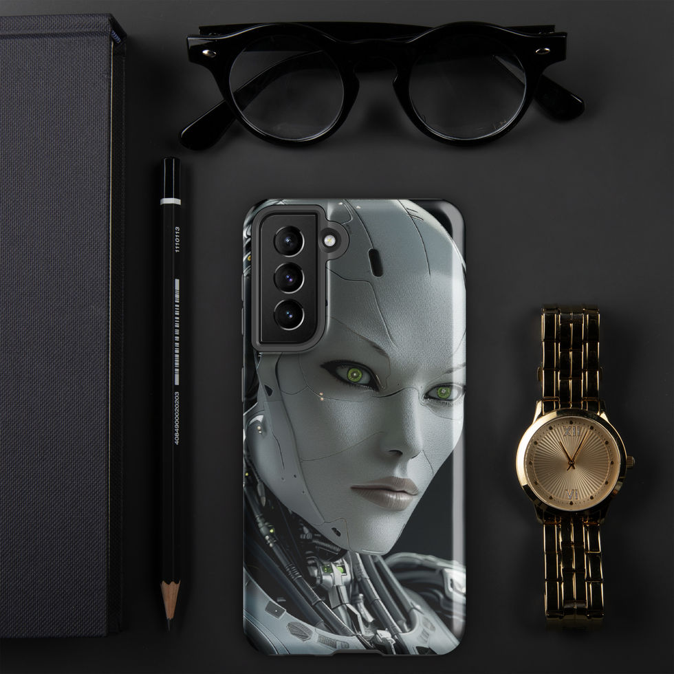 Defend your Samsung with "Cyber Empress", a cybernetic marvel engineered for both beauty and resilience. This AI warrior queen is adorned with a smooth white exoskeleton, advanced plating, and glowing green optics that captivate the imagination. The sleek, human-like facial features contrast against the intricate mechanical joints and exposed wiring, showcasing a design that blends precision engineering with futuristic elegance. Built with dual-layer protection, this tough case ensures your Samsung remains as powerful as the AI force it represents. ??????