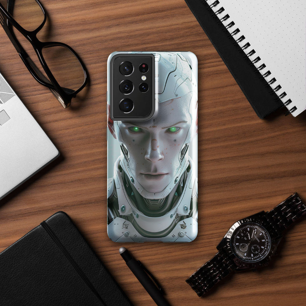 Fortify your Samsung with “Cybernetic Vanguard”, an AI guardian engineered for both protection and presence. This ultra-detailed cybernetic enforcer features a refined white exoskeleton reinforced with mechanical plating, precision engravings, and piercing green optics that radiate intelligence and authority. Subtle battle-worn textures blend seamlessly with polished synthetic structure, creating a powerful balance between realism and futuristic design. Built with dual-layer protection, this tough case ensures your Samsung is as resilient as the AI force it represents.