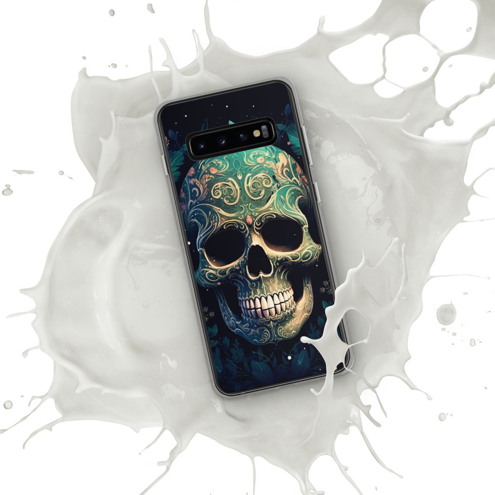 A stunning tribute to the vastness of the cosmos and the beauty of Gothic elegance, the "Emerald Requiem" Clear Case enhances your Samsung’s sleek design while showcasing an ornate celestial skull surrounded by lush greenery, glowing filigree, and twinkling cosmic accents. This transparent yet visually bold case offers a poetic balance of mystery and botanical beauty. 💀🌿✨