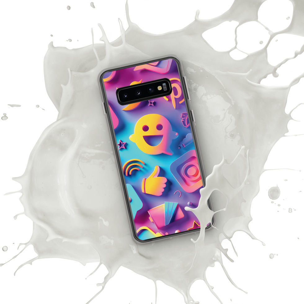 Let your Samsung® shine through the Emoji Vibes Clear Case! With an energetic blend of smiley faces, chat icons, and neon social elements floating over a transparent background, this case keeps your phone protected while making a bold style statement.