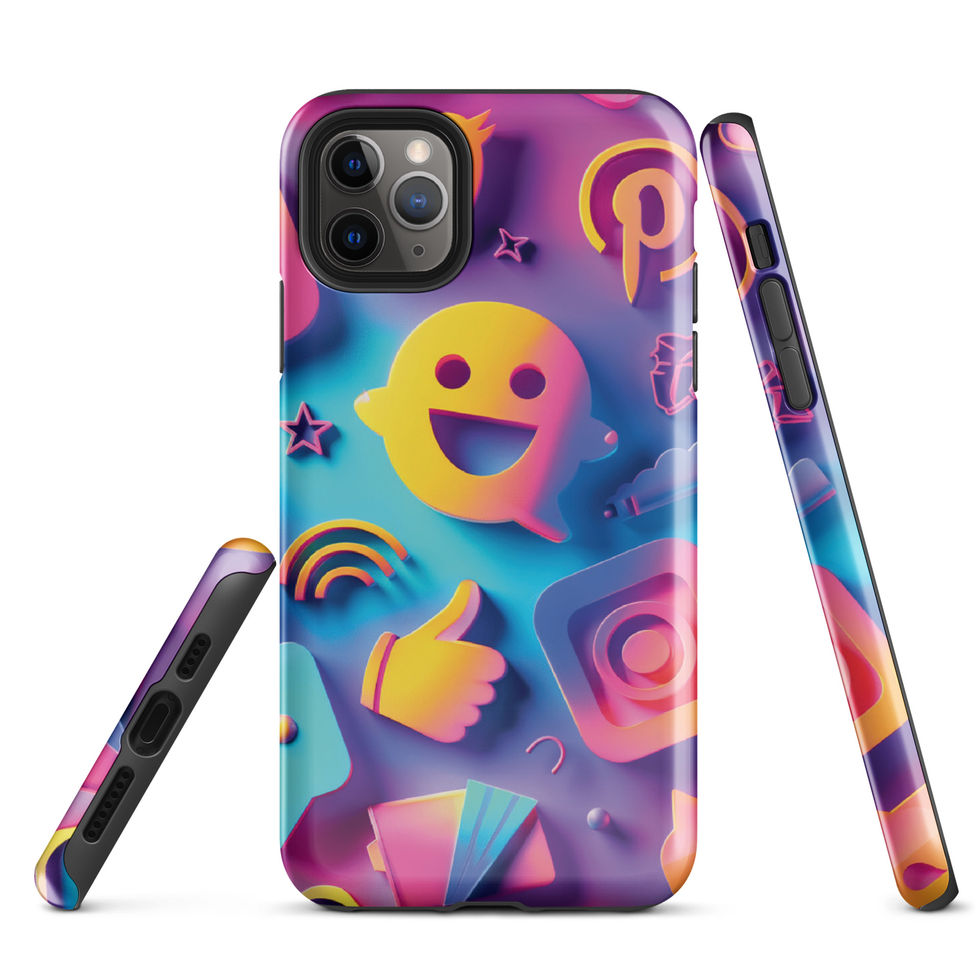 Turn up the fun with the Emoji Vibes Tough Case for iPhone®! Featuring a playful explosion of neon social icons and emoji, this case blends expressive design with tough protection. Whether you love digital culture or simply enjoy a bold aesthetic, this case keeps your phone safe while making a statement.