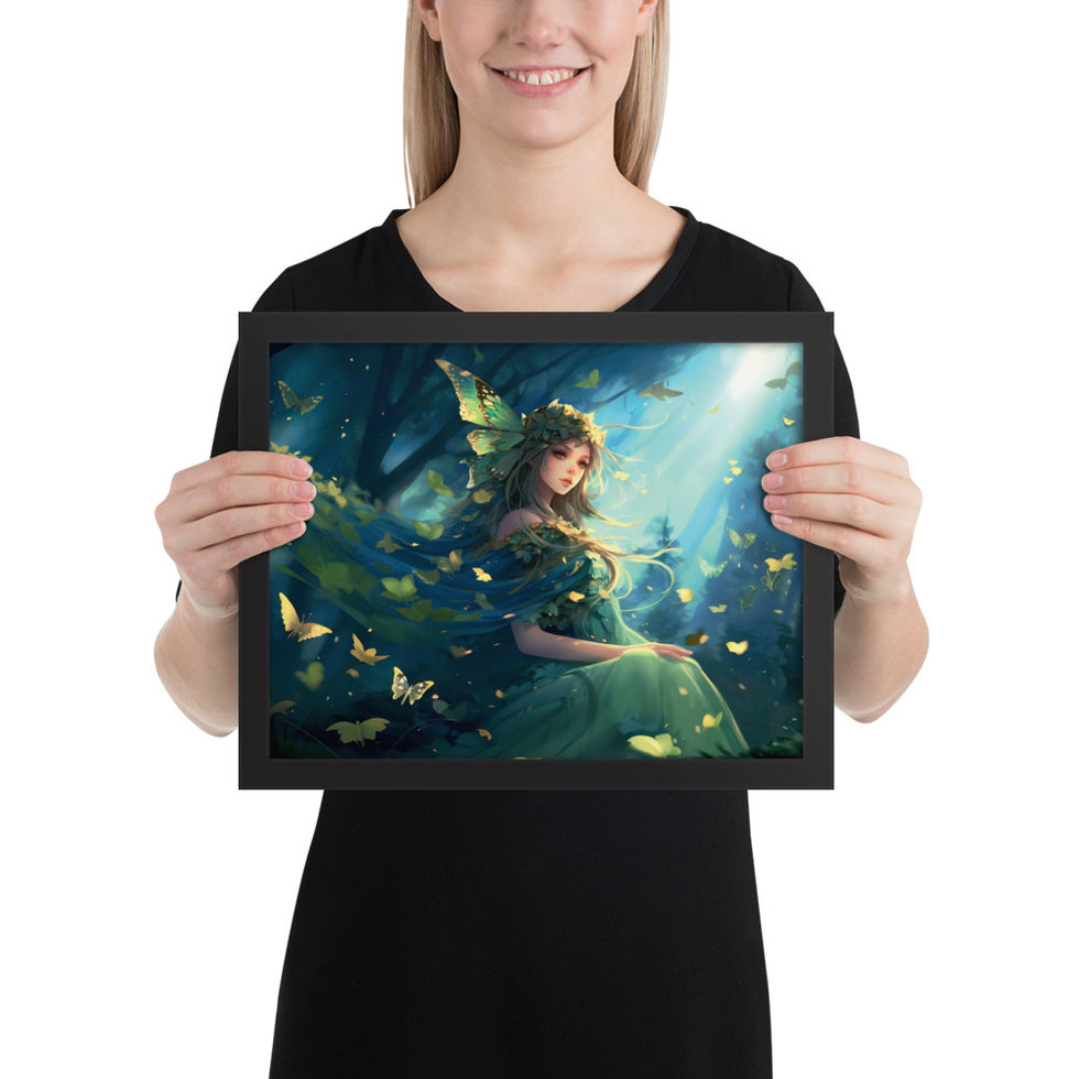 Step into a world of magic with the "Enchanted Whispers" framed poster! Featuring a captivating forest fairy adorned with butterfly wings, surrounded by glowing golden butterflies and bathed in ethereal light, this artwork brings a sense of wonder and enchantment to any space. 🌿🌟