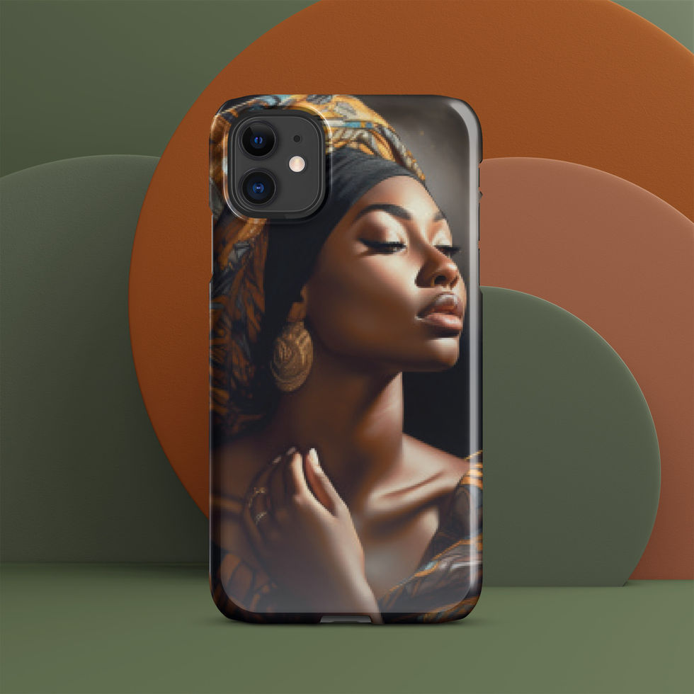 Indulge in regal beauty with the "Ethereal Majesty" Snap Case. This stunning artwork features a poised woman draped in rich golden tones, exuding confidence, strength, and grace. The intricate patterns and soft glow enhance her elegance, creating a case that embodies both power and sophistication. Designed for those who appreciate refined aesthetics with a protective edge. ✨