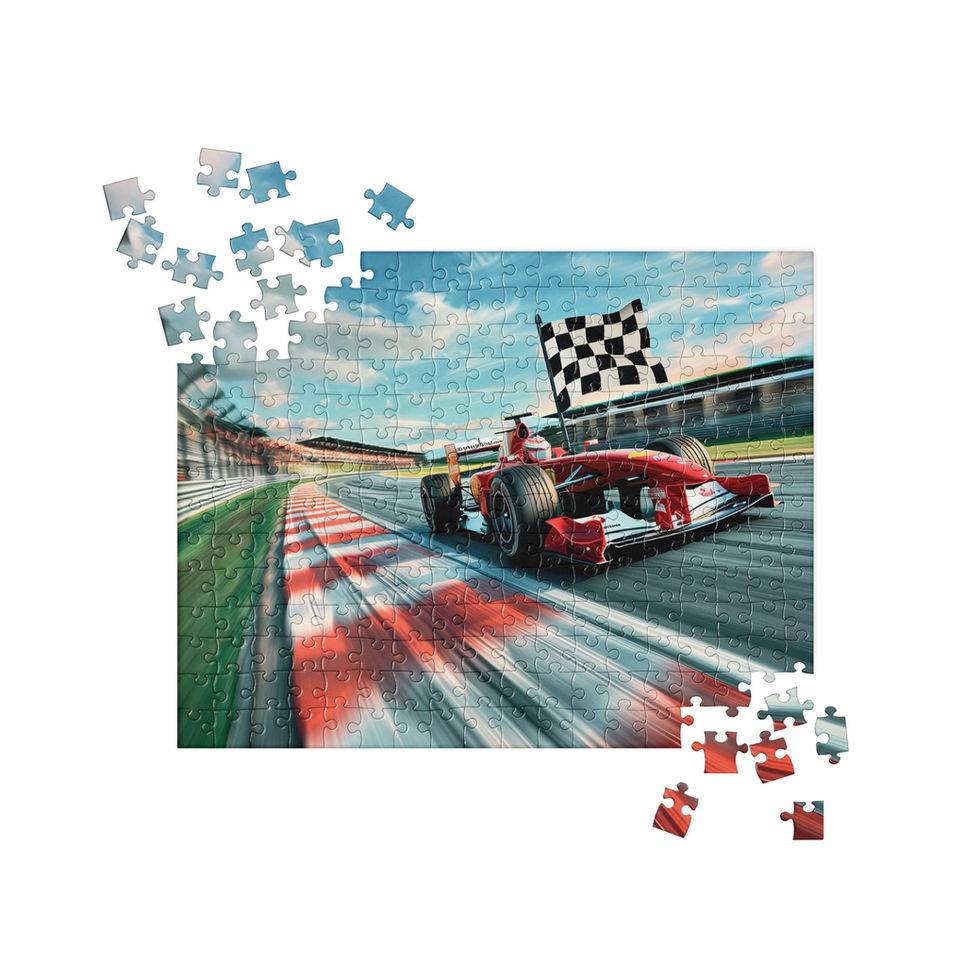 Celebrate the ultimate victory lap with the "F1 Champion’s Finish" jigsaw puzzle. Featuring a stunning red Formula 1 car speeding down the track while proudly carrying the checkered flag, this puzzle captures the essence of triumph, speed, and excitement. 🌟🏁