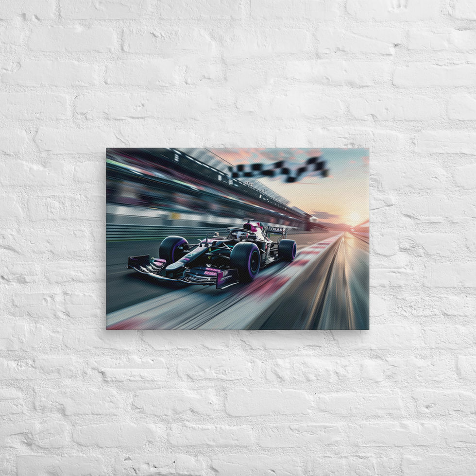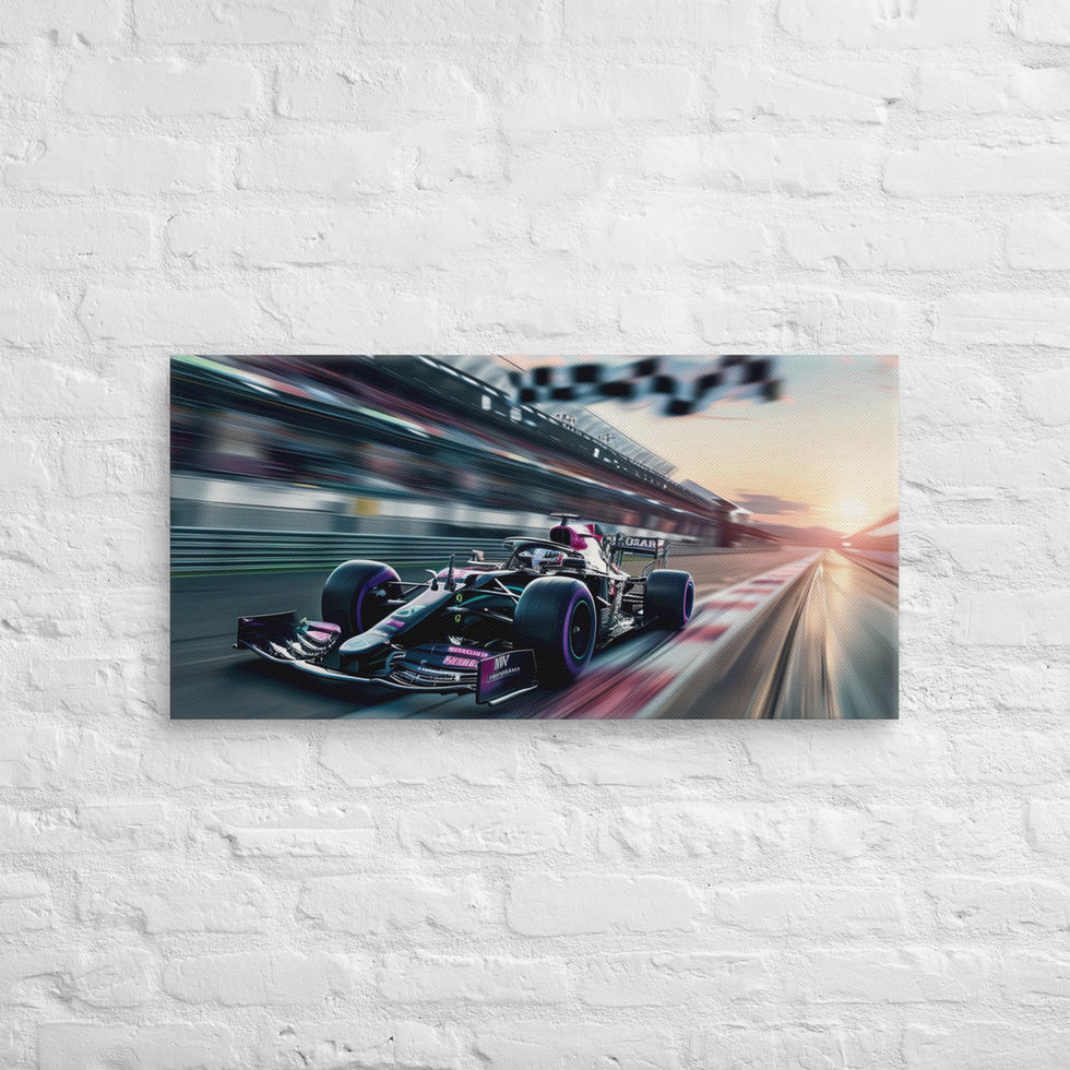 Feel the rush of the racetrack with the "F1 Speed Horizon" canvas. Showcasing a sleek Formula 1 car racing toward the finish line as the checkered flag waves under the glow of a breathtaking sunset, this artwork captures the thrill and beauty of high-speed competition. 🌅🏁