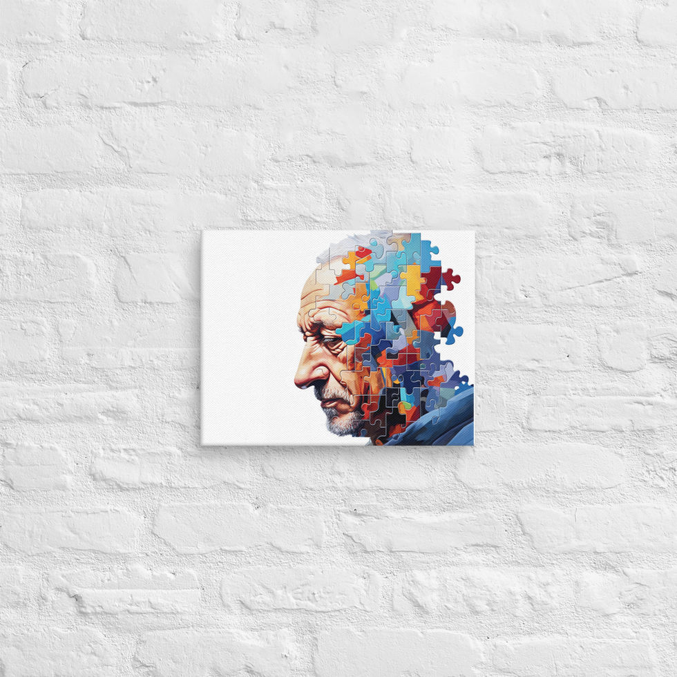 Unravel the beauty of memory and identity with "Fading Pieces", a captivating canvas print that blends realism with abstract fragmentation. Featuring a powerful portrait of an elderly man whose form dissolves into colourful puzzle pieces, this artwork symbolises aging, self-reflection, and the ever-evolving nature of thought. A deeply moving and visually striking addition to any space. ✨🧩🧠