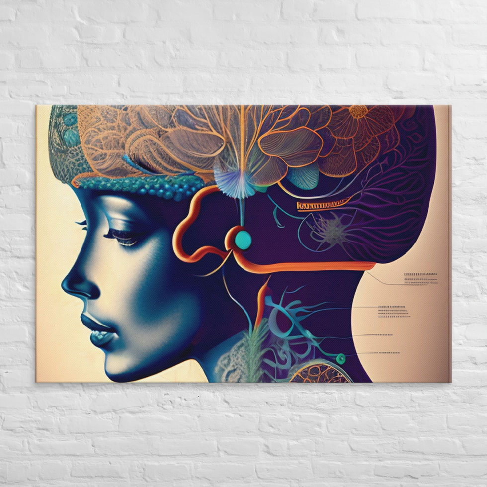 Step into the intricate world of "Floral Intelligence", a canvas print that transforms neuroscience into a stunning visual masterpiece. This surreal artwork illustrates the human brain as a blooming botanical network, where intellect and nature exist in perfect unity. With its rich texture and vibrant colours, this piece adds a touch of inspiration to any space. 🌿🧠