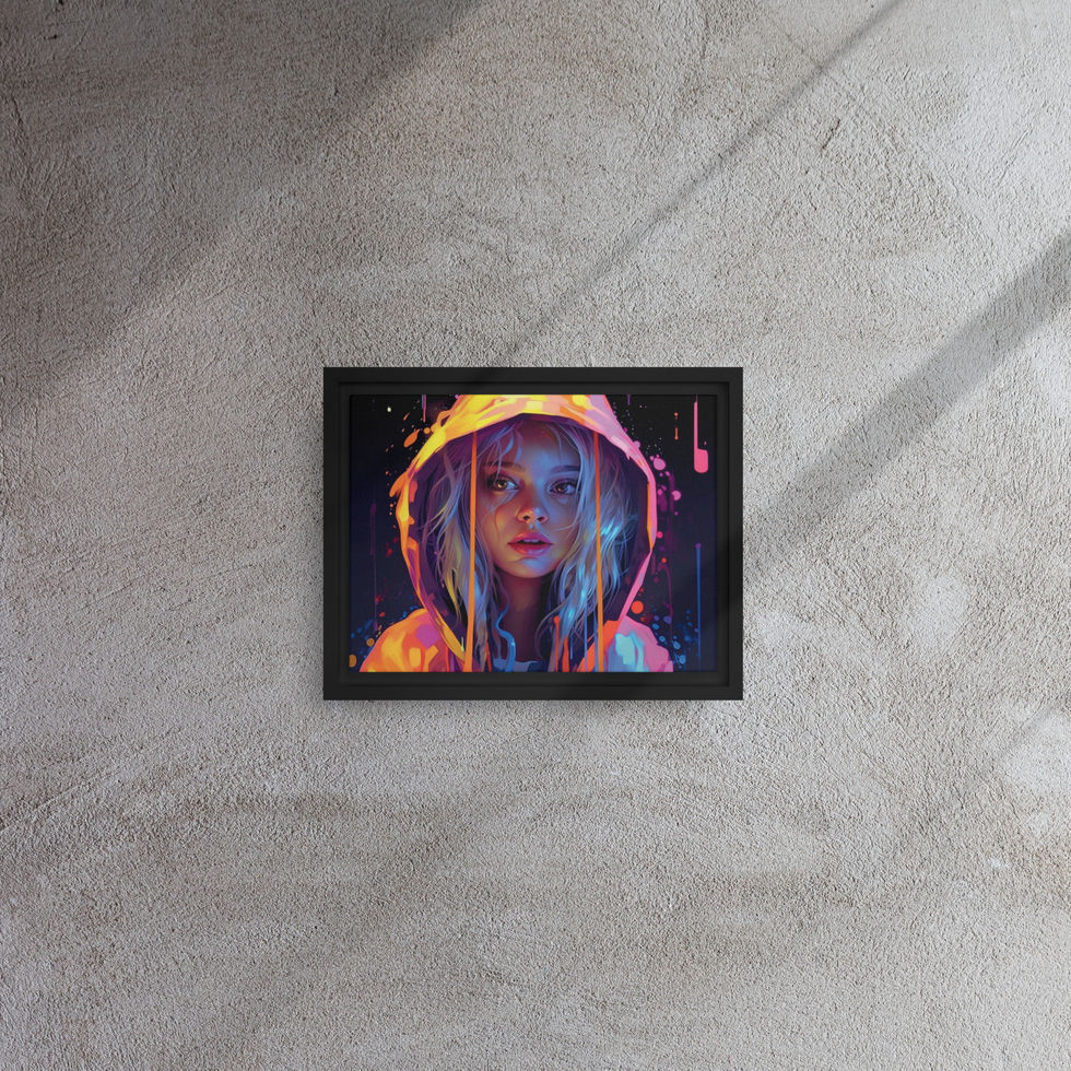 Illuminate your space with "Fluro Girl" framed canvas! Order yours today. 🌟🎭