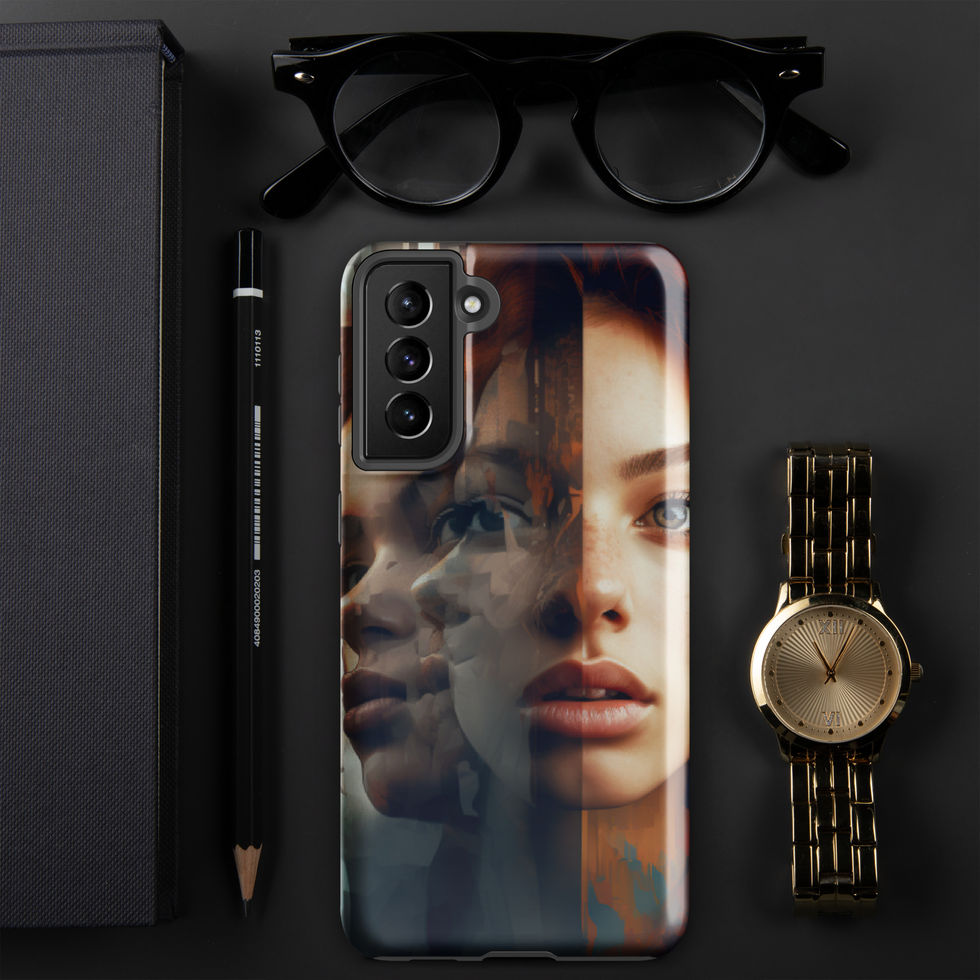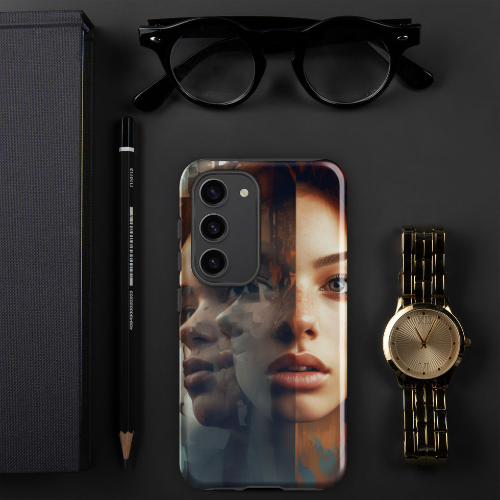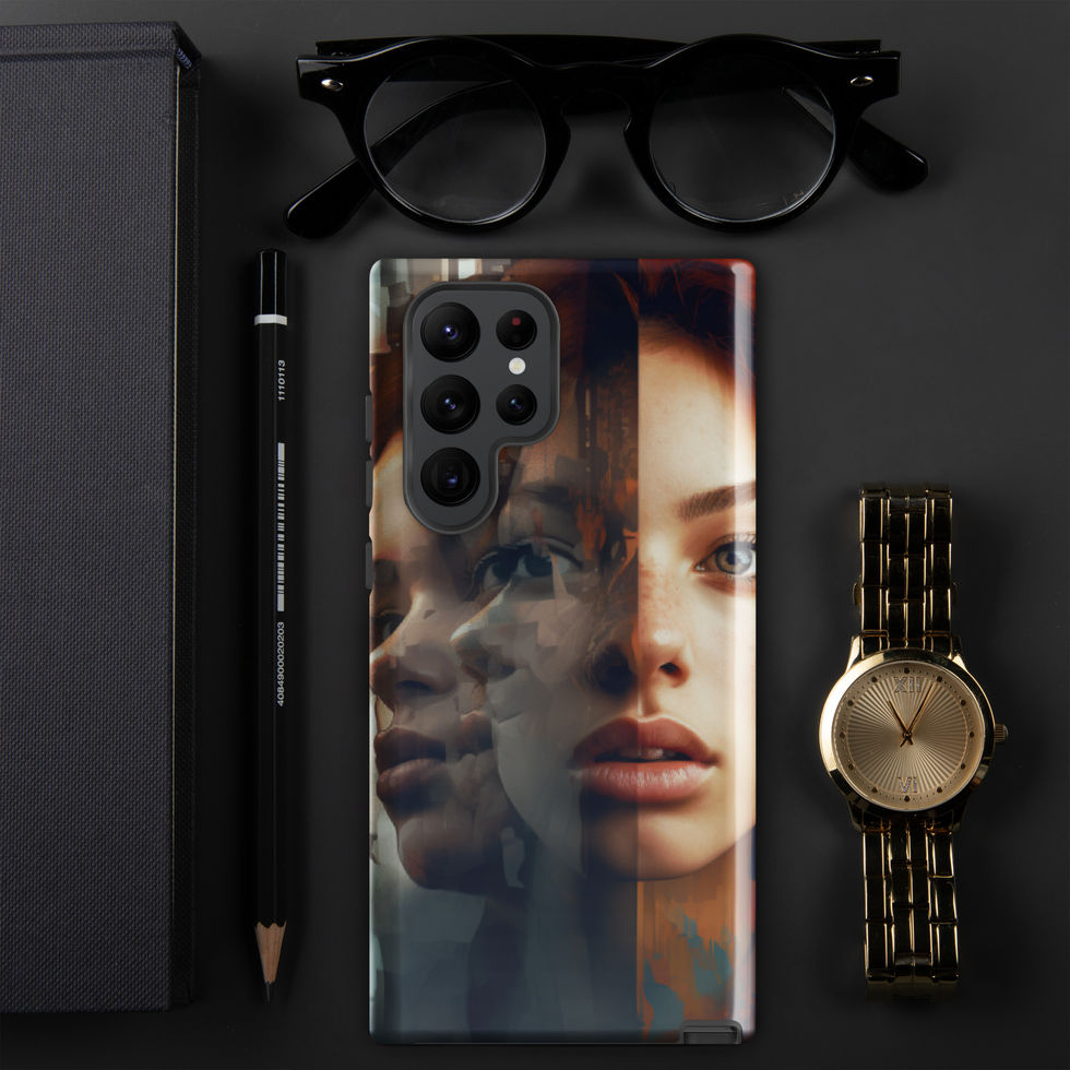 Turn your Samsung into a portal of transformation with the "Fragmented Reality" tough case! This bold design features a fiery-haired woman, her image dissolving into a fragmented dreamscape, symbolising the blurred lines between perception and reality. A striking contrast of dark, moody tones and bursts of copper brilliance makes this case a must-have for those who embrace the unknown. ?????
