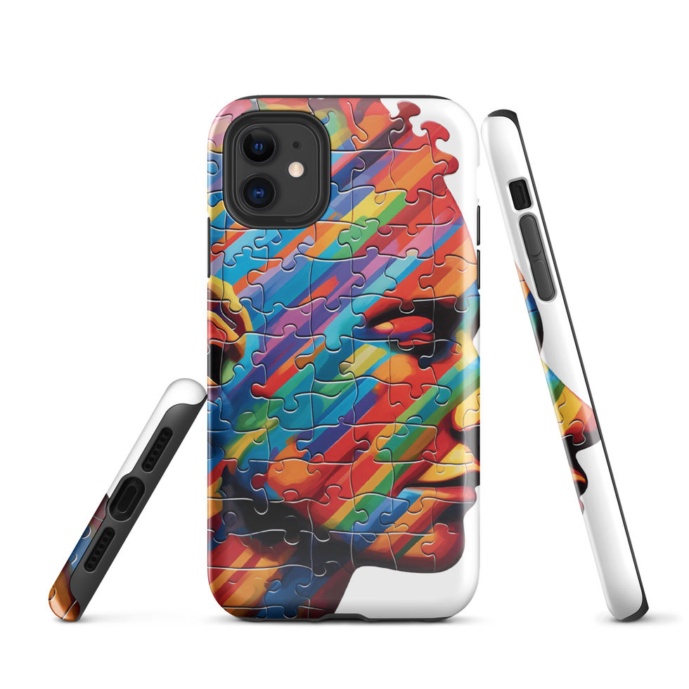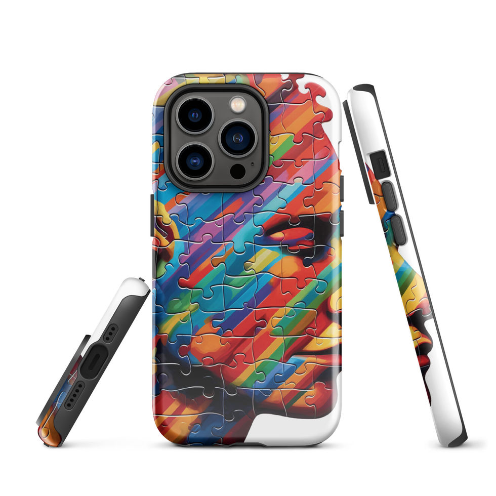 Strength and style merge in the "Fragmented Spectrum" tough case! This visually stunning artwork showcases a human profile assembled from glossy, interlocking puzzle pieces, each stroke bursting with vibrant colour. The puzzle�s fragmented edges suggest an ever-growing intelligence, a mind in motion. Rich blues and deep oranges contrast sharply with bold yellows and fiery reds, creating an artwork that symbolises both order and chaos in perfect harmony. Offering high-end protection with its durable dual-layer build, this case is designed for those who think outside the lines. ??????