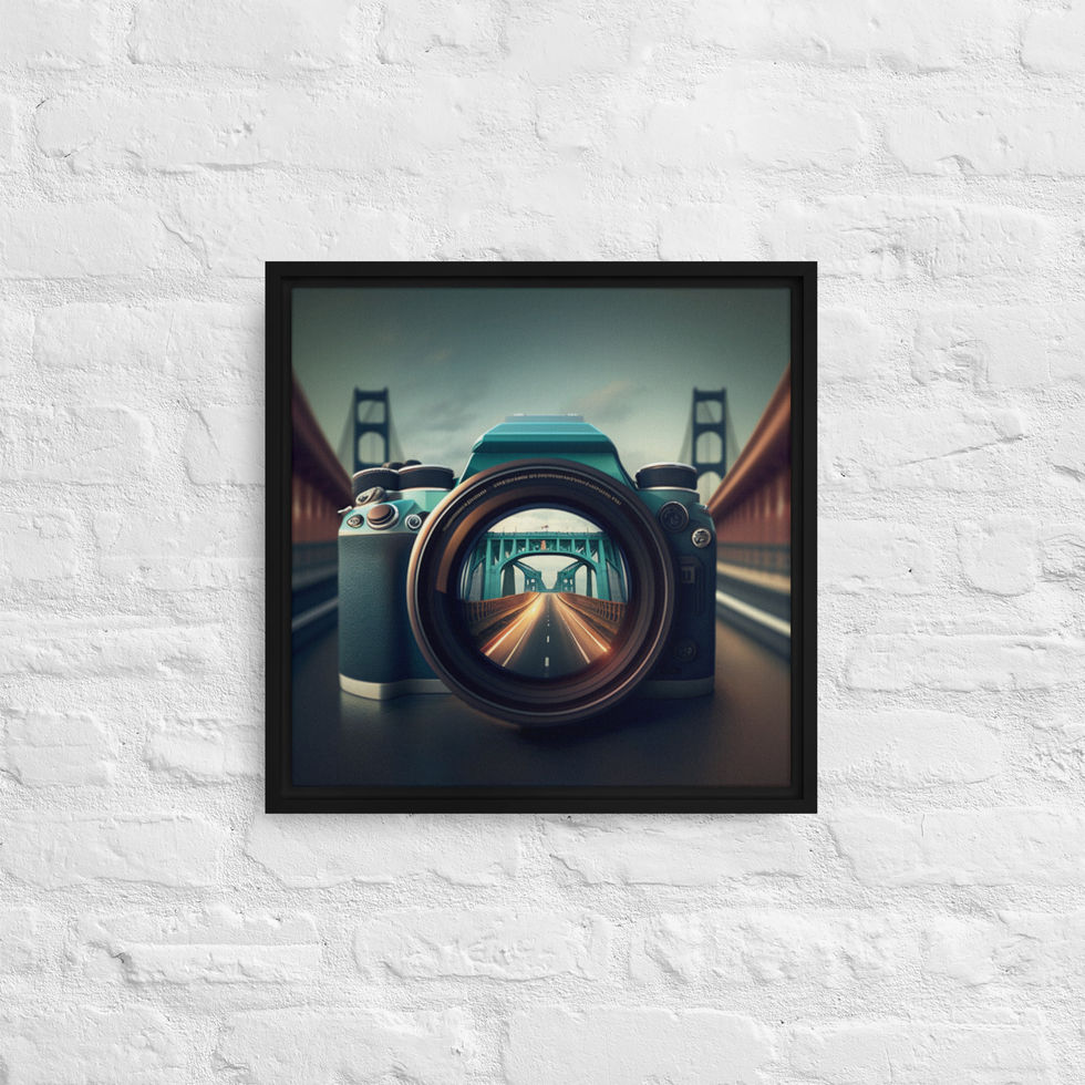 Step into a world of vision and creativity with the "Framed Perspective" framed canvas! This striking artwork showcases a surreal camera lens reflecting an endless bridge, symbolising limitless possibilities, perspective, and the journey ahead. A must-have for those who appreciate the art of seeing beyond the ordinary. 🌉🔮