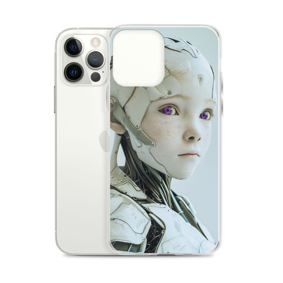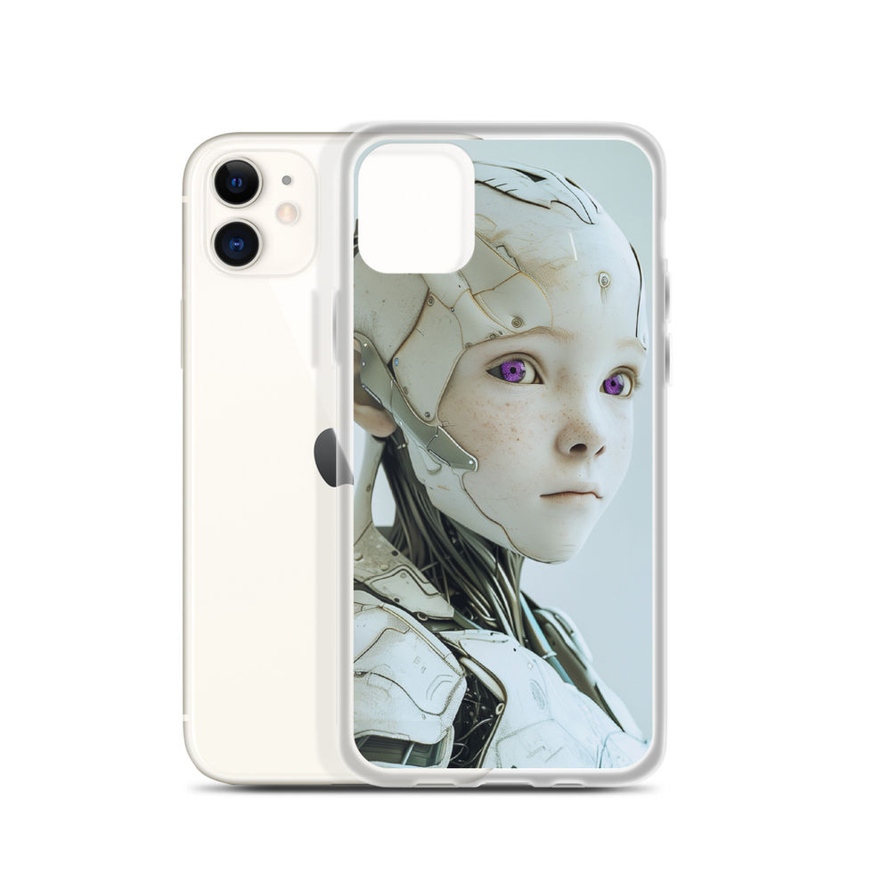 Let your iPhone shine while embracing the futuristic touch of "Future Spark". The childlike humanoid robot with vivid purple eyes and sleek, intricate cybernetics is brought to life on this clear case, letting your iPhone�s original design shine through while adding a touch of future-tech brilliance. ??????
