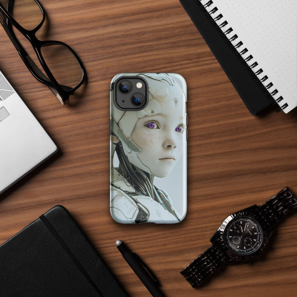 For those seeking durability with style, "Future Spark" delivers. Featuring a childlike humanoid robot with glowing violet eyes and intricate metallic detailing, this tough case offers drop protection while showcasing an innovative design. Perfect for anyone who wants to protect their iPhone while showing off their futuristic taste. ??????