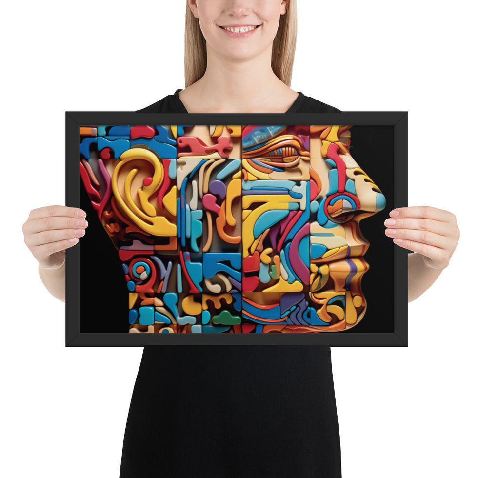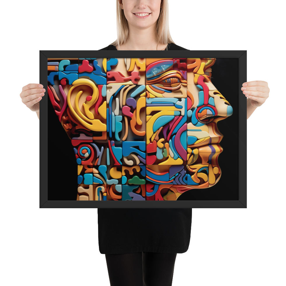 Elevate your space with "Geometric Mind", a mesmerizing framed poster that fuses surrealism with intricate abstraction. Featuring a bold human profile interwoven with puzzle-like structures and geometric patterns, this artwork symbolizes intelligence, perception, and the infinite complexity of thought. A visually striking statement piece that adds depth and curiosity to any modern setting. ✨🧩🧠