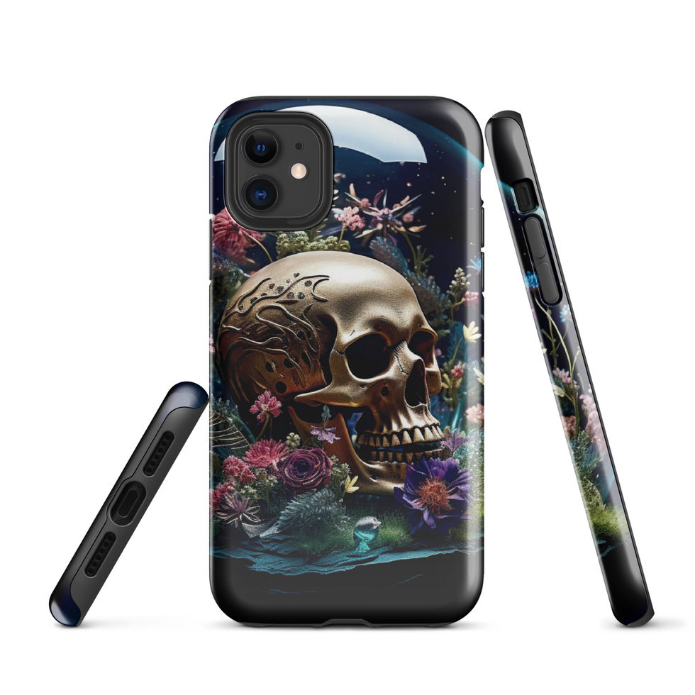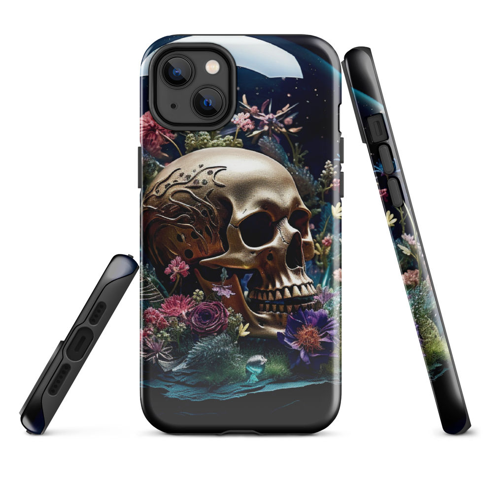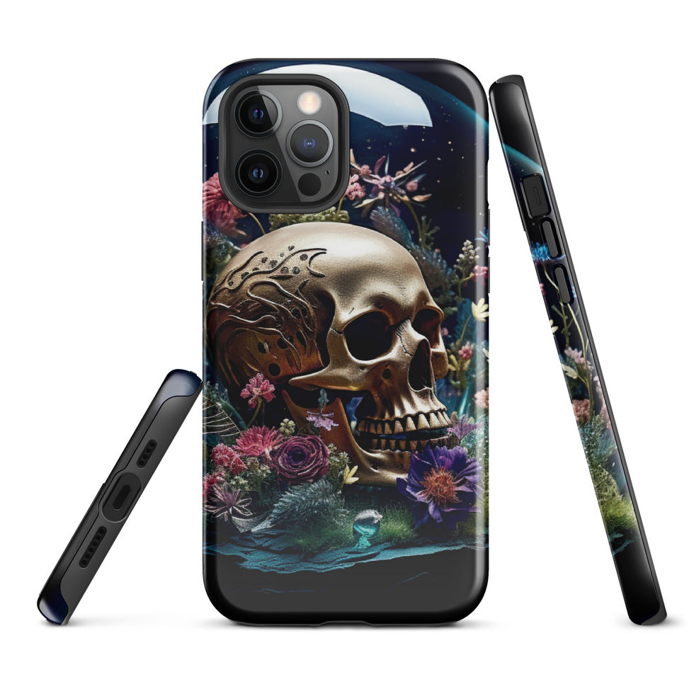 A breathtaking fusion of opulence and decay, the "Gilded Veil" Tough Case transforms your iPhone into a symbol of mystery and elegance. Featuring a golden skull intricately adorned with ornate engravings, nestled among delicate wildflowers, this design captures the beauty in impermanence. Crafted for those who appreciate dark aesthetics with a regal twist, this case delivers both premium protection and artistic brilliance.