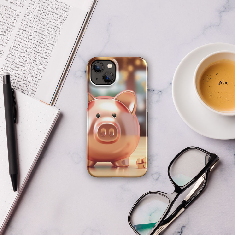 The "Golden Fortune" Snap Case radiates warmth, prosperity, and charm. Featuring a gleaming rose-gold piggy bank with soft glowing lights in the background, this design symbolises wealth, savings, and good fortune. A playful yet stylish way to add a touch of abundance to your everyday life! 🐷💰✨