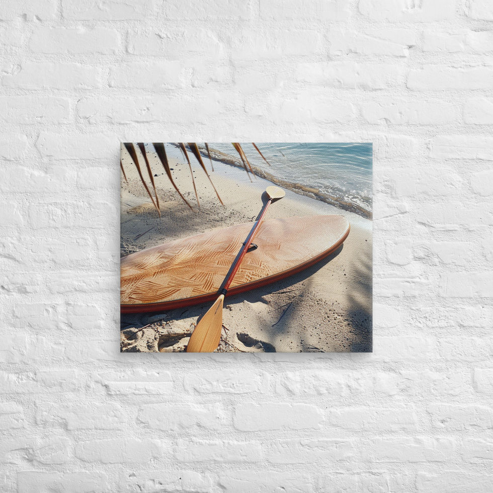 Bring the tranquillity of the coast to your space with the "Golden Paddleboard Escape" canvas. Featuring a stunning paddleboard and oar resting on sunlit sands by a shimmering shoreline, this artwork embodies serene coastal charm. 🌴✨