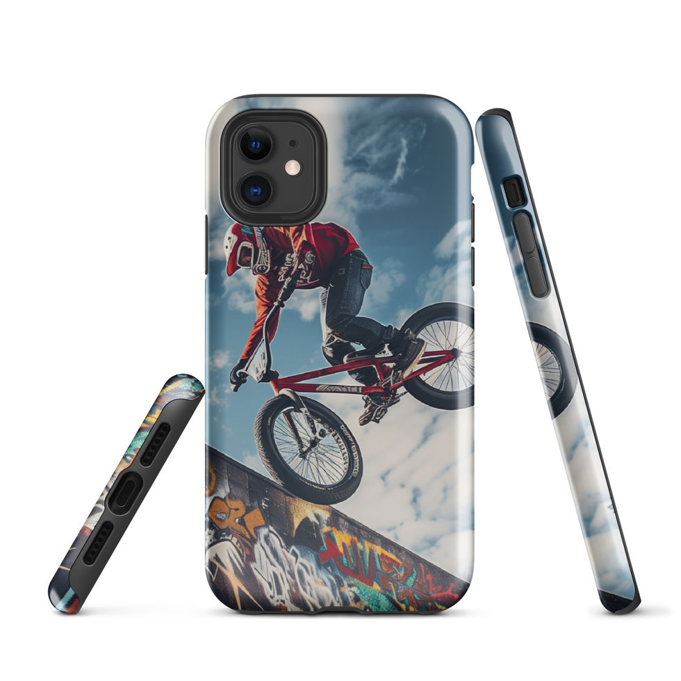 Live the BMX lifestyle with maximum protection and bold style! The Graffiti Air Tough Case for iPhone® features a fearless BMX rider launching into the sky above a graffiti-splashed urban scene, delivering an explosion of action and creativity. With dual-layered protection, this case is designed for those who push limits. 💥🚀