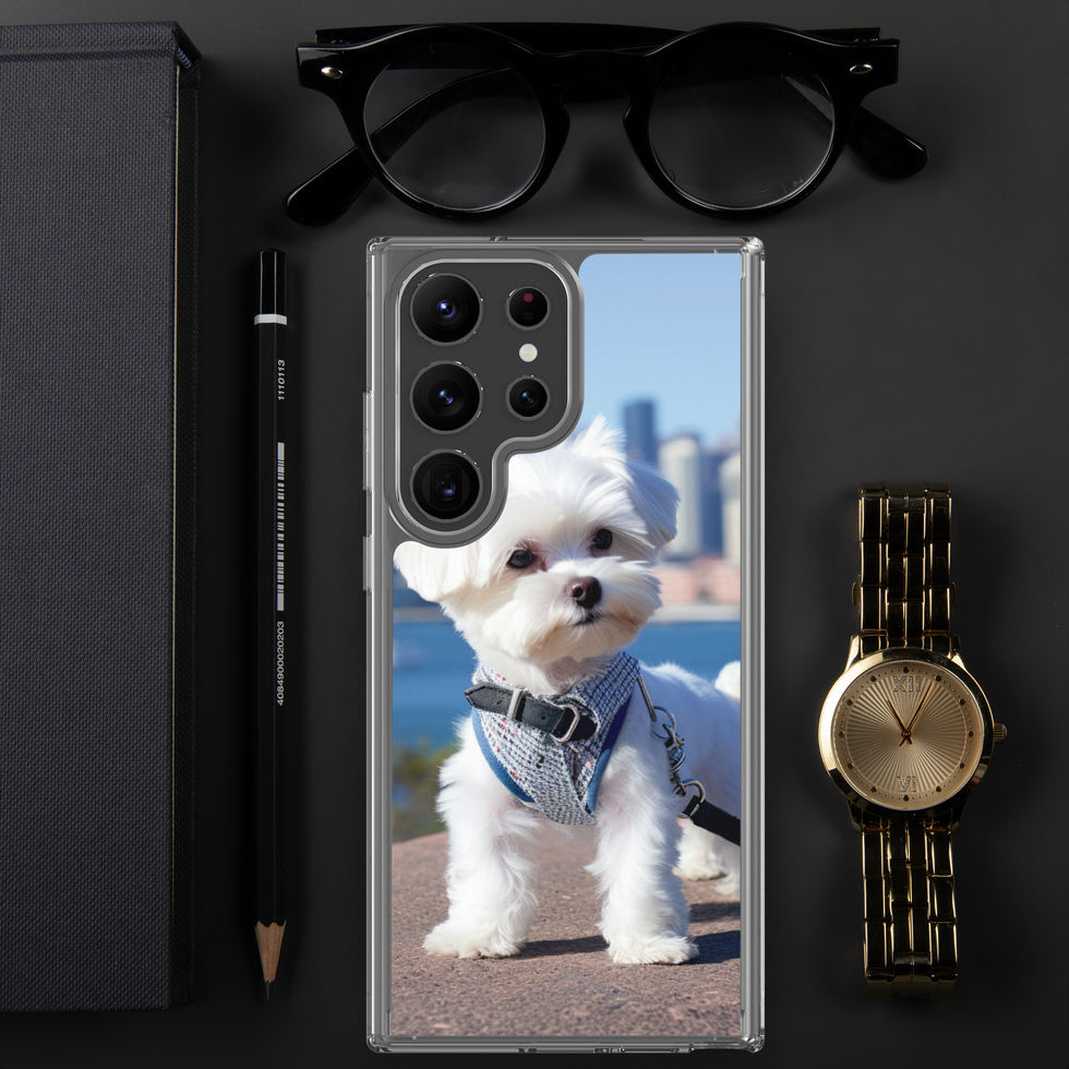 Let your Samsung shine while embracing the energy of an adventurous city pup with the "Harbour Explorer Pup" Clear Case! This sleek and vibrant design features a fluffy white pup standing on a scenic waterfront, framed by modern skyscrapers and serene blue waters. The transparent background allows your phone’s natural beauty to blend seamlessly with this dynamic artwork. 🐶🏙️⚓