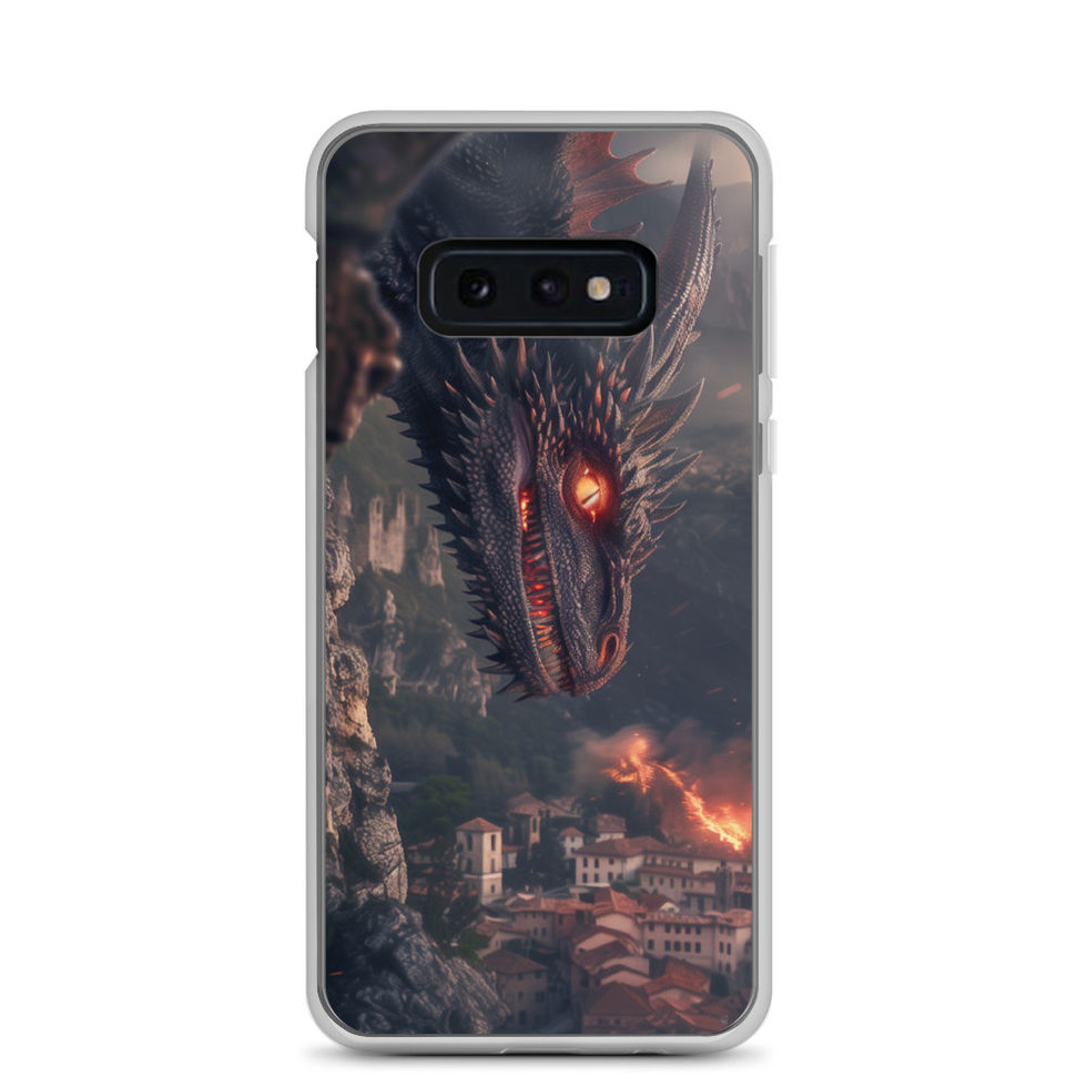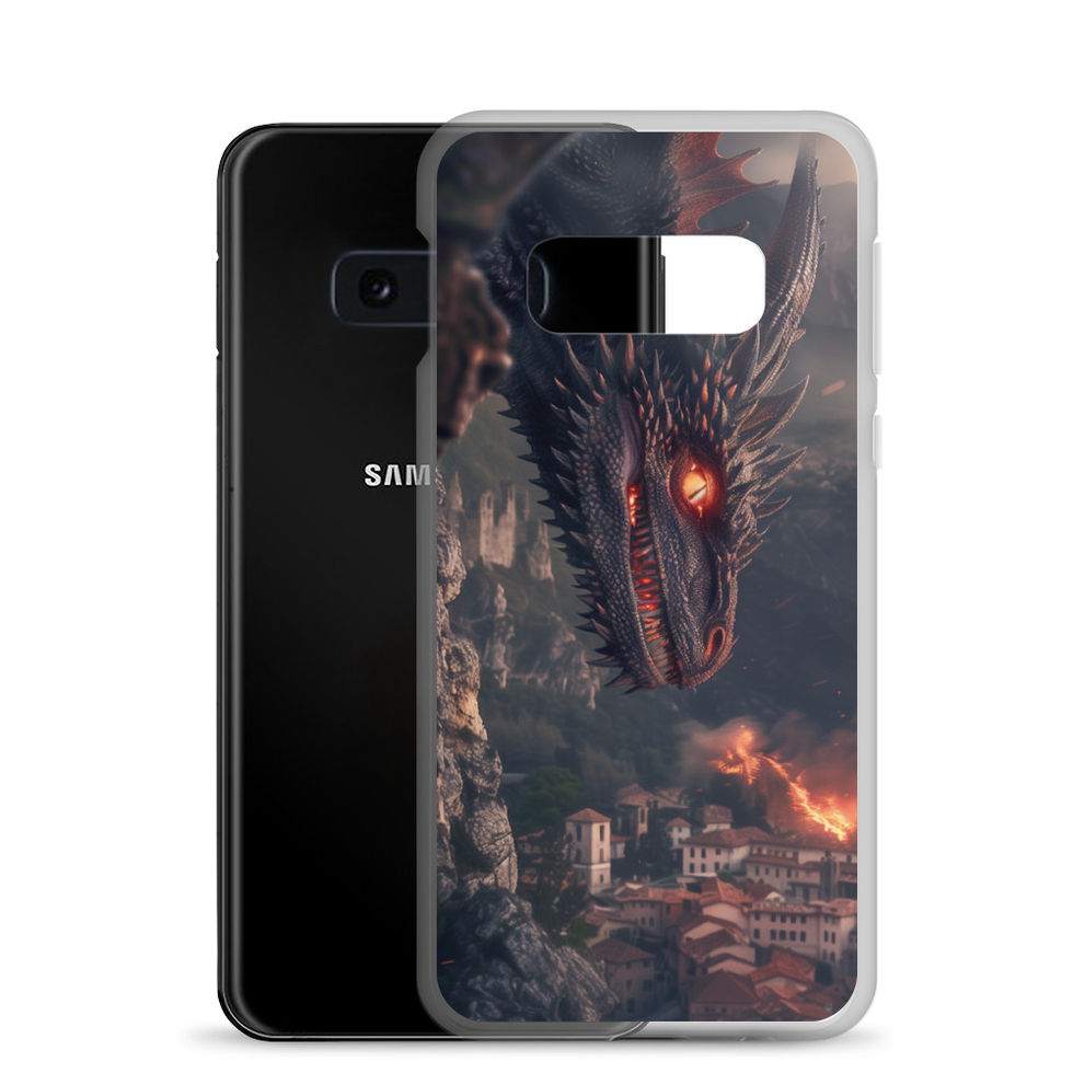 Witness the silent terror of an ancient predator with the "Infernal Watcher" Clear Case for Samsung®. A black-scaled dragon lurks from the shadows, its glowing amber eyes fixated on the burning city below. Smoke rises, embers drift through the air, and a kingdom’s fate hangs in the balance. With its transparent design, this case enhances your phone’s sleekness while adding an aura of legendary menace. 🌋⚡