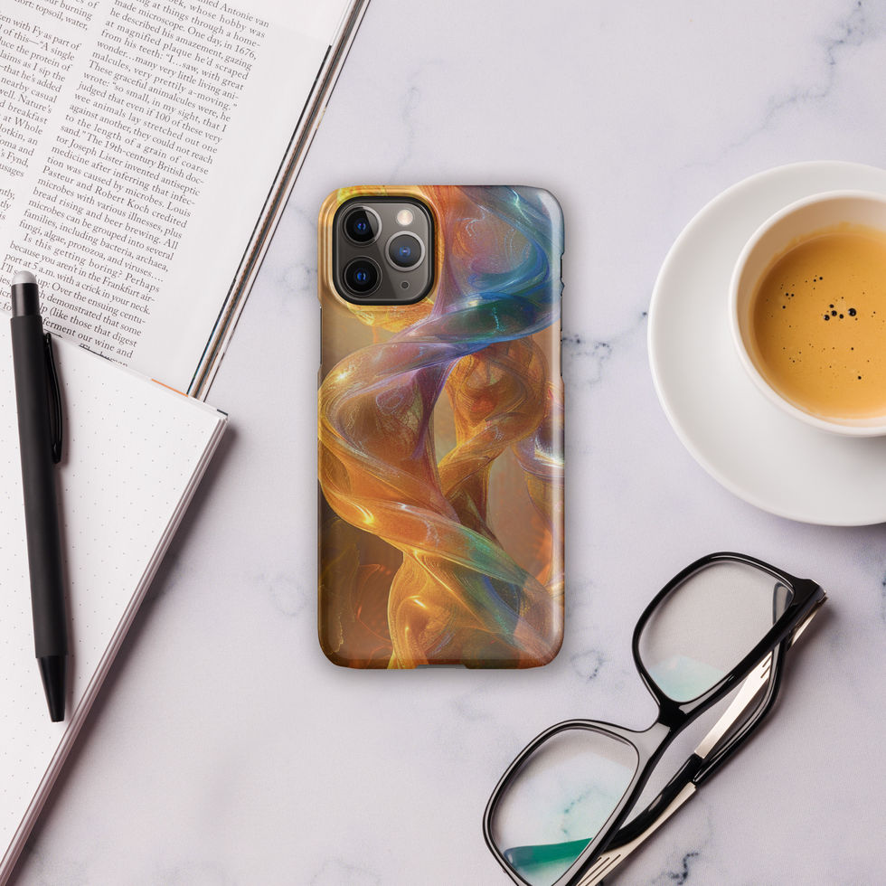 Experience the harmony of fluid motion and luminous artistry with the "Intertwining Entities" Snap Case. This breathtaking design captures golden and ethereal strands twisting together in a delicate dance of energy and form. Their translucent, shimmering textures create an illusion of glowing silk woven through the cosmos, representing unity, movement, and the beauty of interconnected forces. A stunning choice for those who admire surreal elegance and abstract expression. ✨🌌