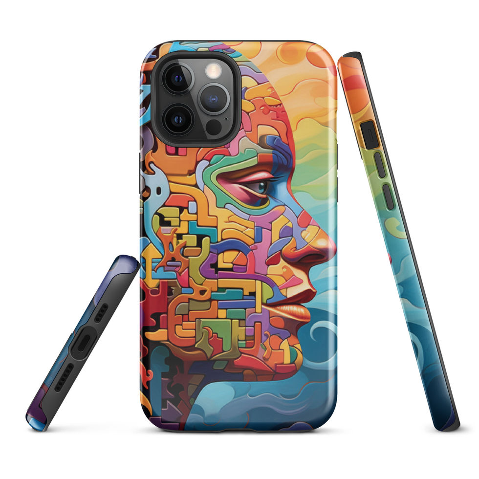 Strength and artistry combine in "Labyrinth of Thought", a visual masterpiece that captures the essence of intelligence and abstract design. The human profile is constructed from vivid, maze-like structures, seamlessly transitioning into flowing, free-form shapes that dissolve into an ethereal dreamscape. Shades of deep crimson, electric blue, and warm gold add a mesmerizing depth to this surreal artwork, symbolising the infinite possibilities of thought and creativity. This tough case is built to protect while showcasing the brilliance of abstract expression. 🎭🌀✨