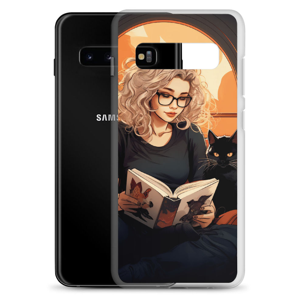 "Literary Haven" Clear Case for Samsung® 📖🐈⬛✨