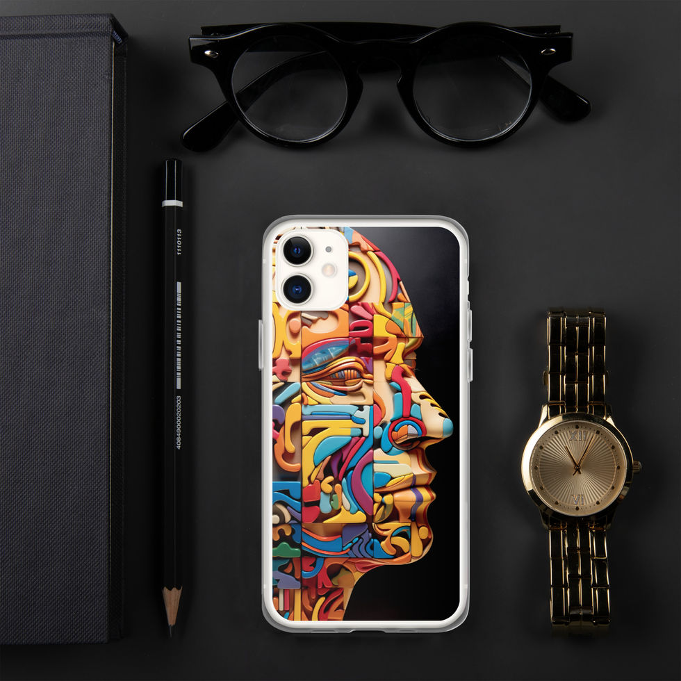 Let your iPhone’s sleek design shine while embracing the captivating energy of "Mechanical Mind". This transparent case highlights a surreal human profile, crafted from interlocking puzzle pieces in a mesmerizing mix of warm golds, deep blues, and fiery reds. The intricate, almost mechanical arrangement of the design suggests a mind constantly working, evolving, and expanding. The clear background allows your device’s original aesthetic to blend seamlessly with the artwork, making this case a subtle yet stunning visual masterpiece. 🔷🔥🕶️