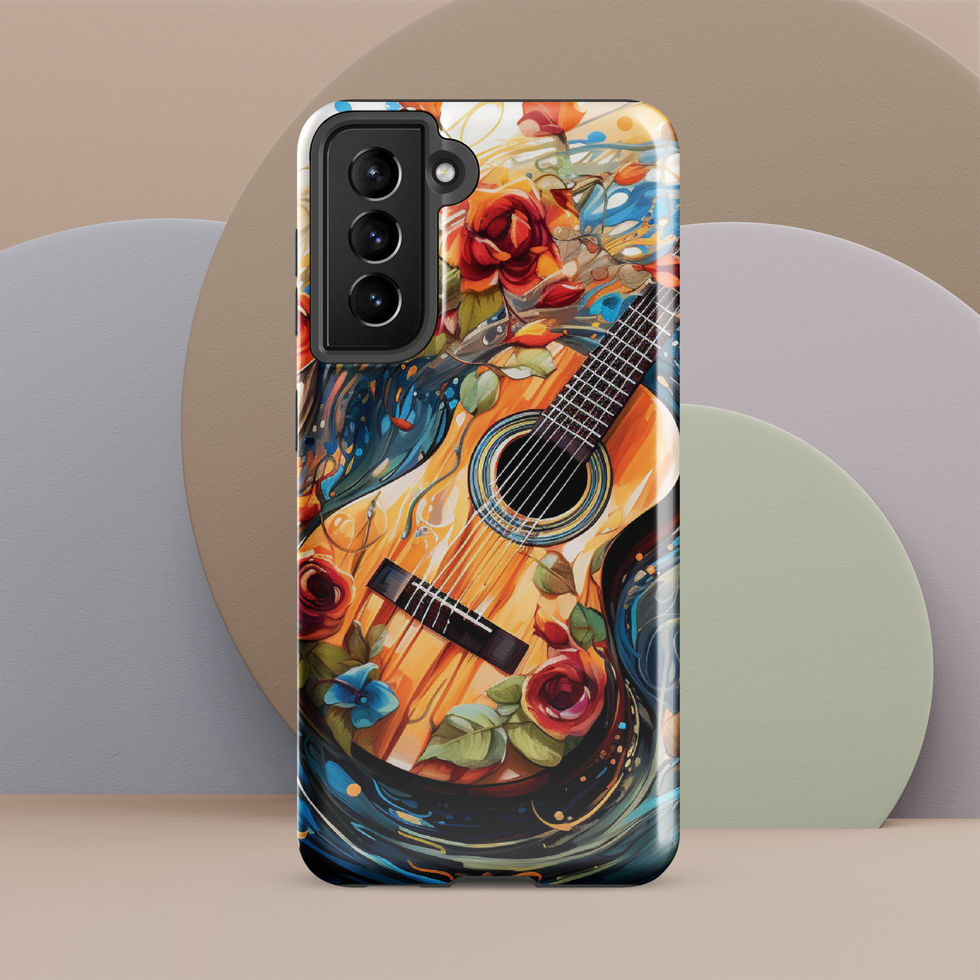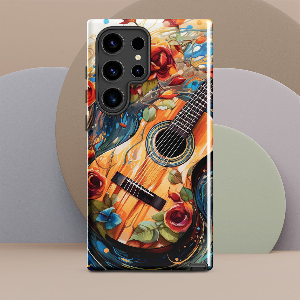 Dive into the art of music with the Melodic Waves Tough Case for Samsung®! This striking case features a beautifully detailed acoustic guitar, surrounded by cascading waves of deep blue, fiery red roses, and delicate gold leaves. The fluid movement of colour and sound creates a mesmerizing visual that is perfect for musicians, artists, and free spirits alike. 🌊🎵