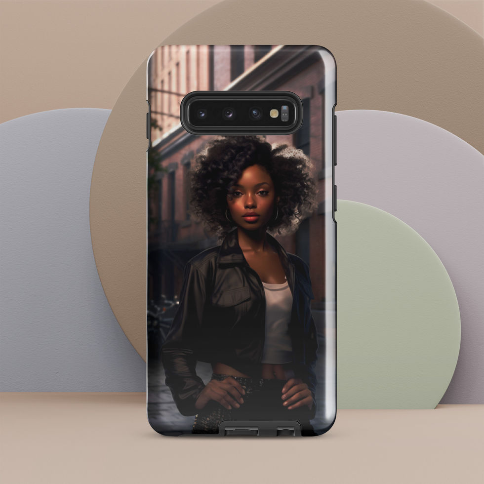 Command attention with the Midnight Allure Tough Case. This stunning design showcases a strong, confident woman in the heart of a city at night, exuding sophistication in her leather jacket and shimmering details. A seamless fusion of power and beauty, this case is perfect for those who move through life with fearless elegance. 🛡️💎