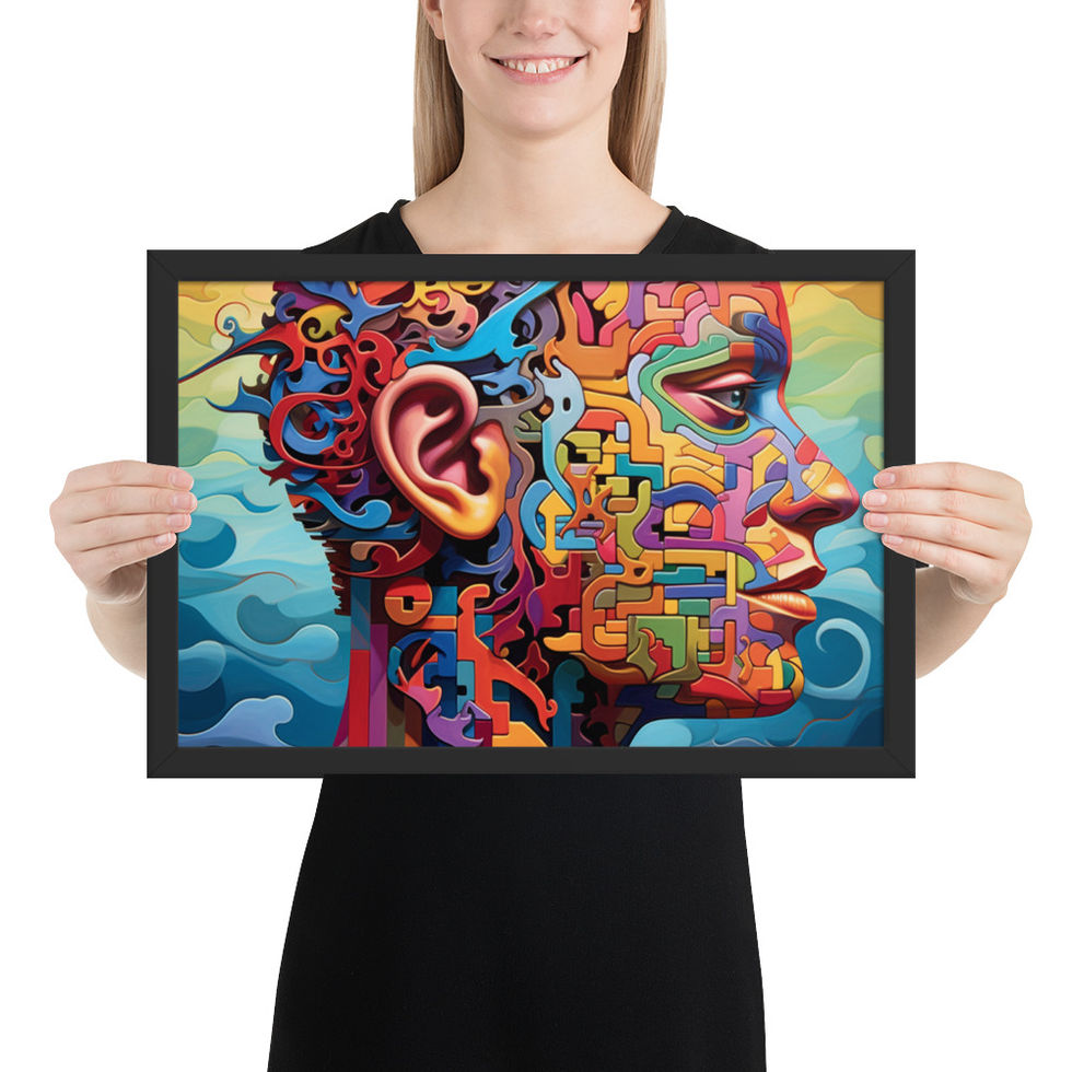Transform your walls with "Mindscapes", a mesmerizing framed poster that blends surrealism with intricate abstraction. Featuring a vivid human profile interwoven with puzzle-like structures and fluid organic forms, this artwork represents intelligence, imagination, and the limitless nature of thought. A bold and thought-provoking statement piece for any modern setting. ✨🧩🧠