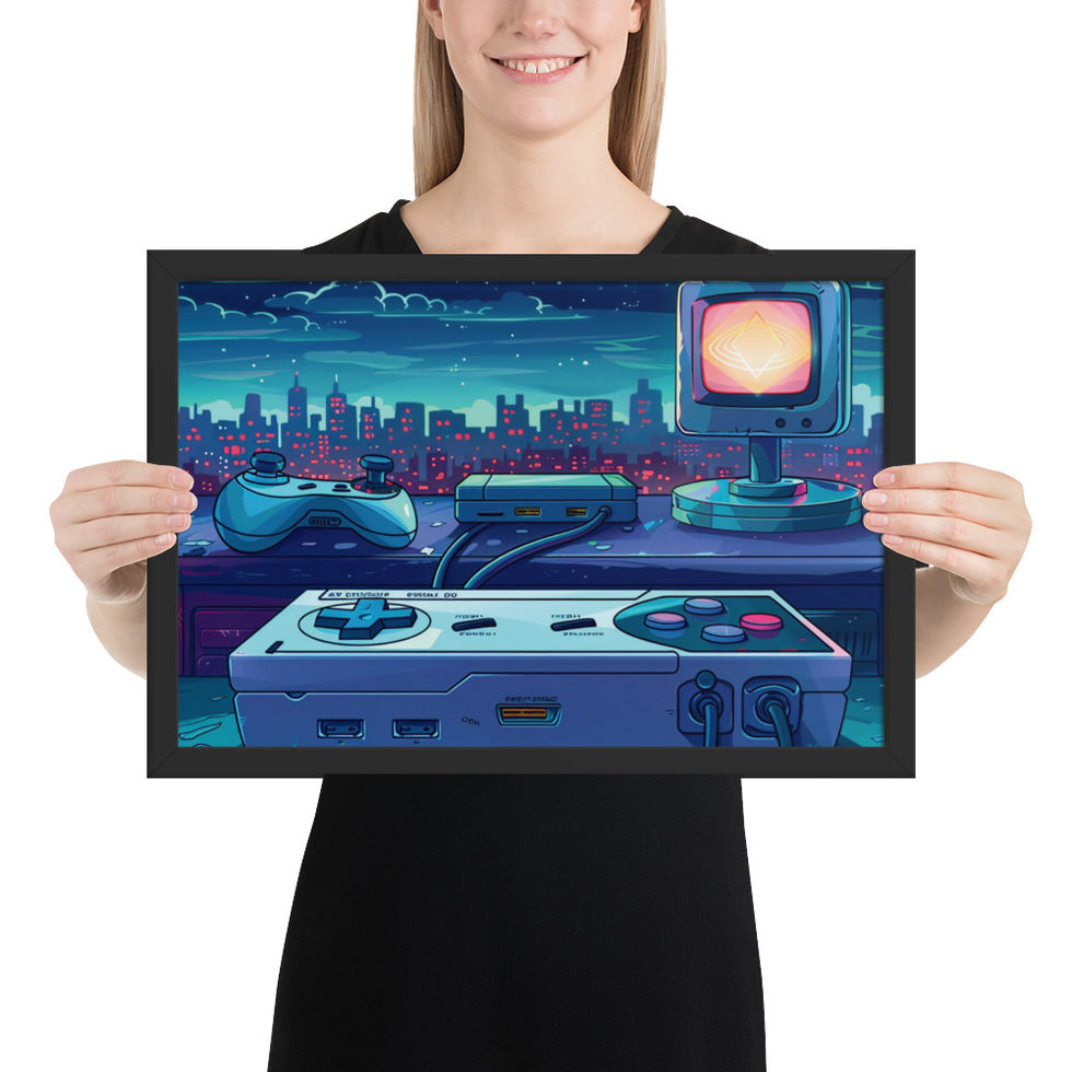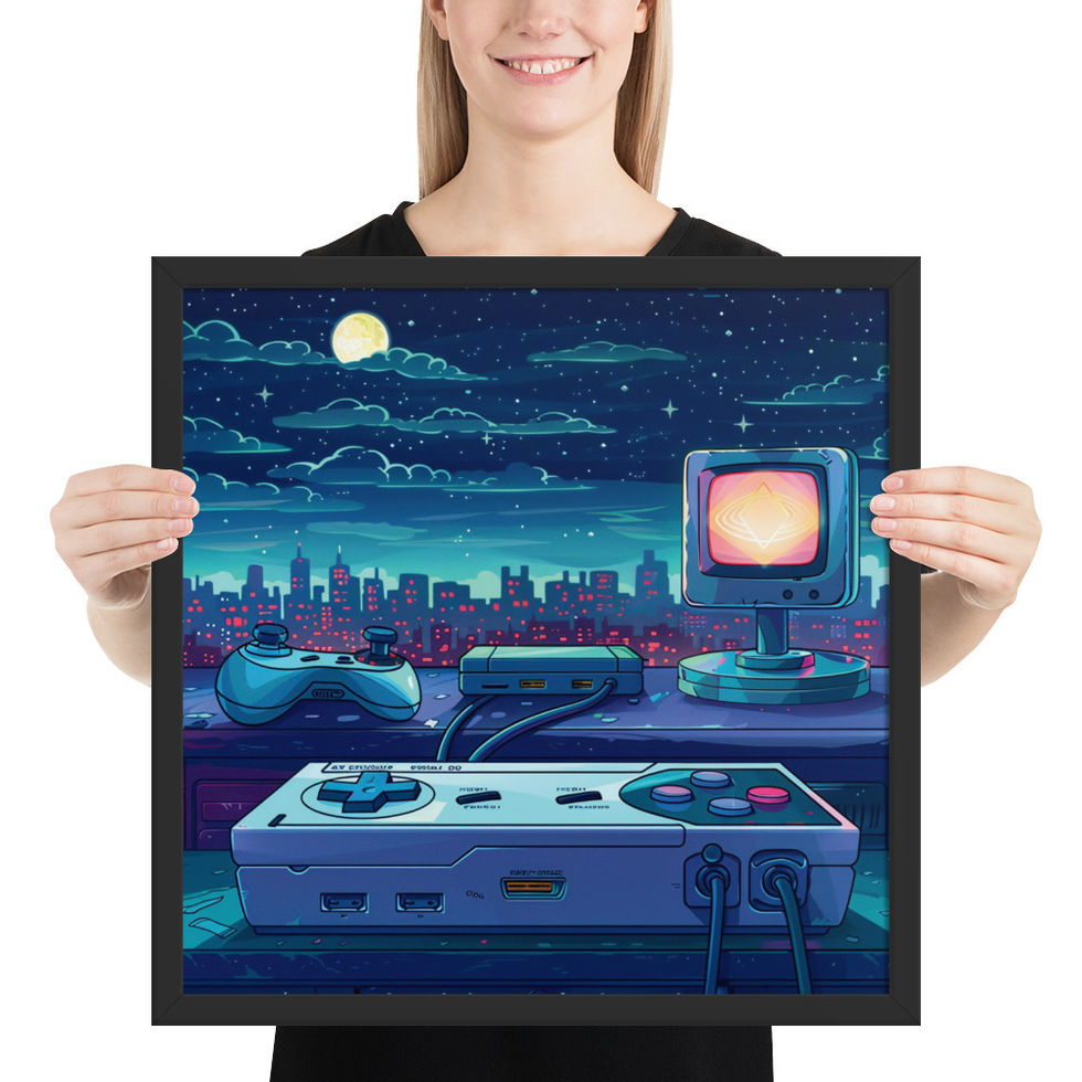 "Moonlit Gaming Nostalgia" Framed Poster 🎮🖼️