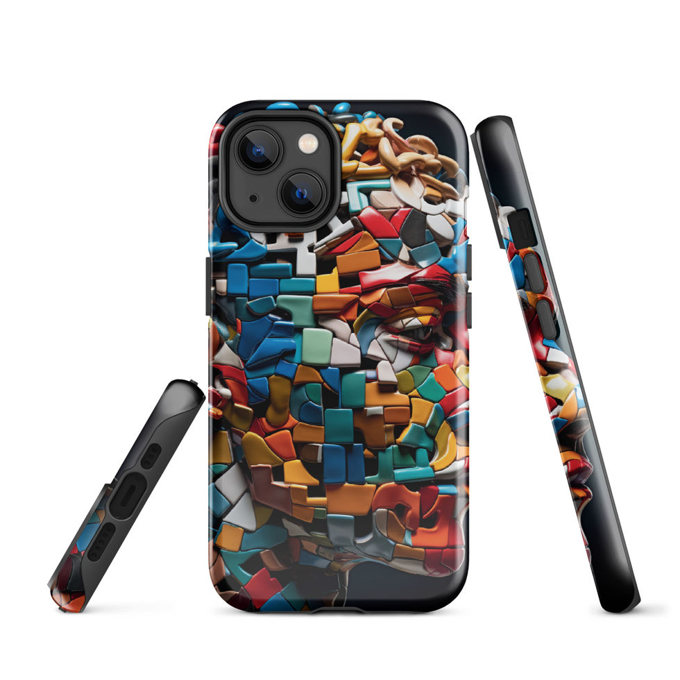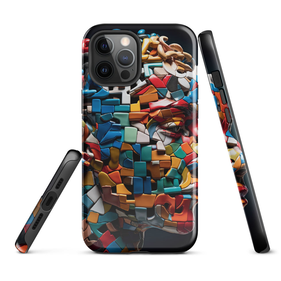 Protect your phone in striking style with the "Mosaic Mind" tough case! This captivating design features a profile portrait composed entirely of glossy, interlocking puzzle pieces. The rich contrast of deep blues, fiery reds, and warm golds forms a face that seems to shift and evolve, reflecting the complexity of human thought. The 3D-like texture adds a futuristic edge, making this case a bold representation of individuality, intelligence, and transformation. Combining high-level protection with avant-garde design, this case is made for those who see beyond the surface. ?????