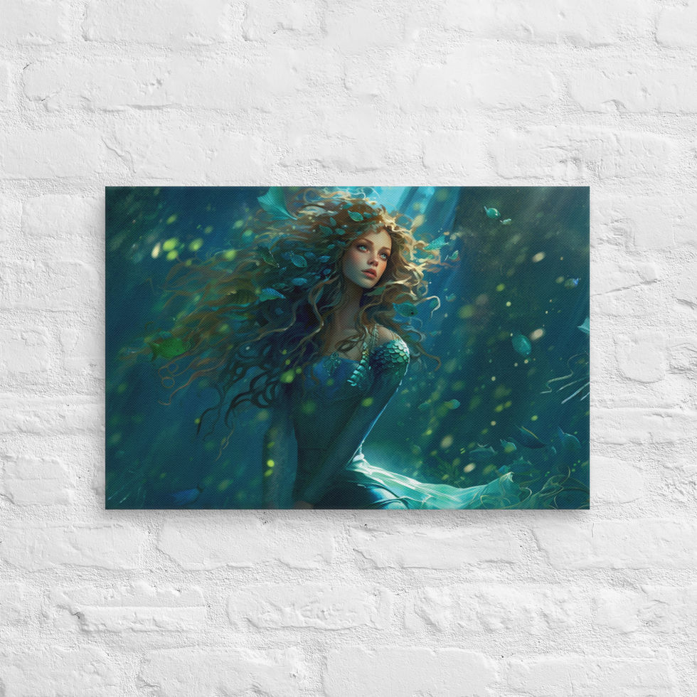 Dive into an enchanting underwater realm with the "Mystic Depths" canvas! This breathtaking artwork features a luminous mermaid, her flowing hair adorned with shimmering aquatic life, bathed in ethereal light as she drifts through the ocean’s hidden wonders. A mesmerizing fusion of fantasy and nature, this piece captures the beauty of the deep. ✨🐠