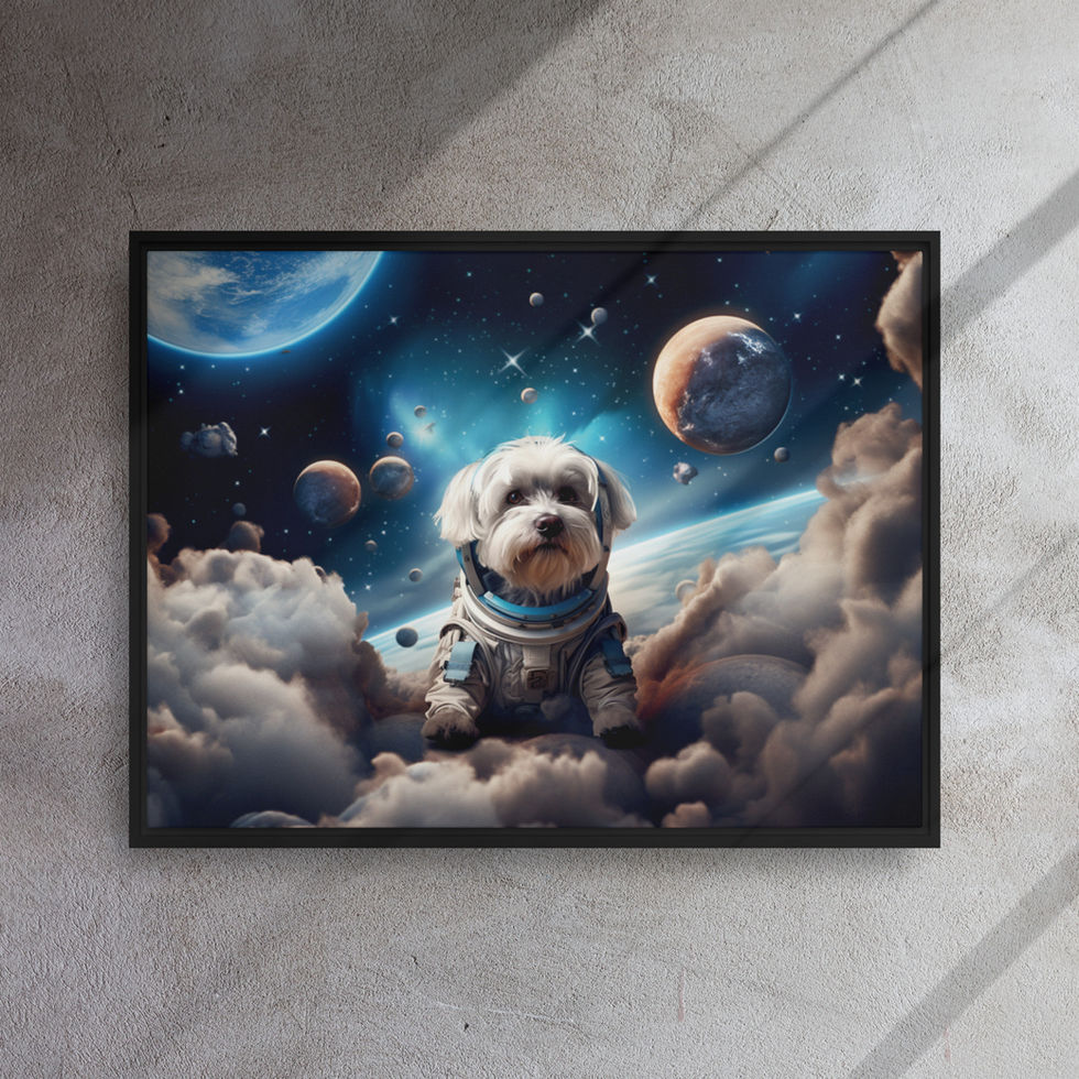 Transform your space with "Nebula Navigator", a mesmerizing framed canvas featuring a loyal space pup exploring the depths of the universe. Standing among swirling nebula clouds, glowing planets, and a vast celestial sky, this brave astronaut dog brings a sense of wonder and adventure to any setting. The framed canvas adds depth and texture to the scene, making it an immersive statement piece for dreamers and space lovers alike. 🌌🐾✨