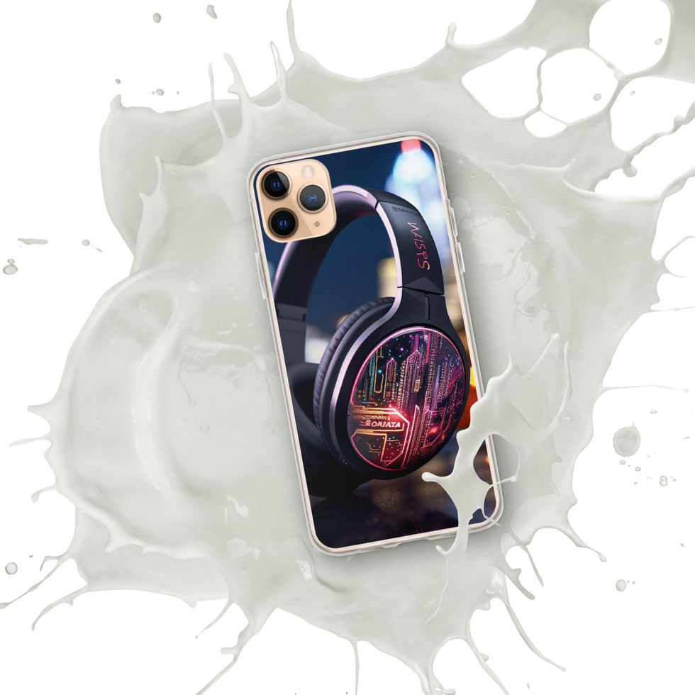 "Neon Beats" Clear Case for iPhone® 🎧🌆📱