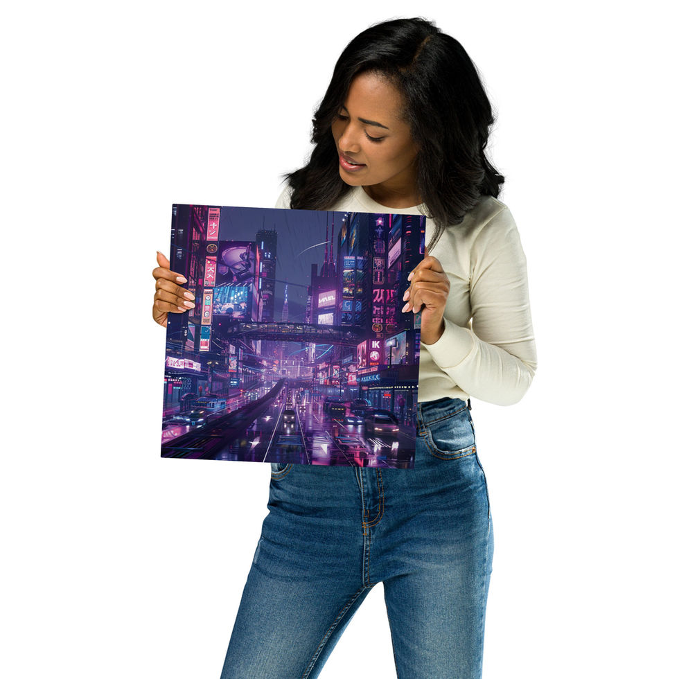 "Neon Cybercity" Metal Print 🌆🔮🖼️