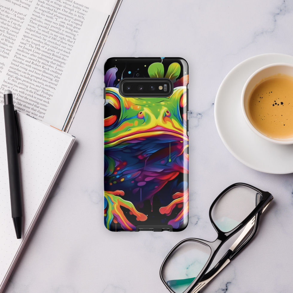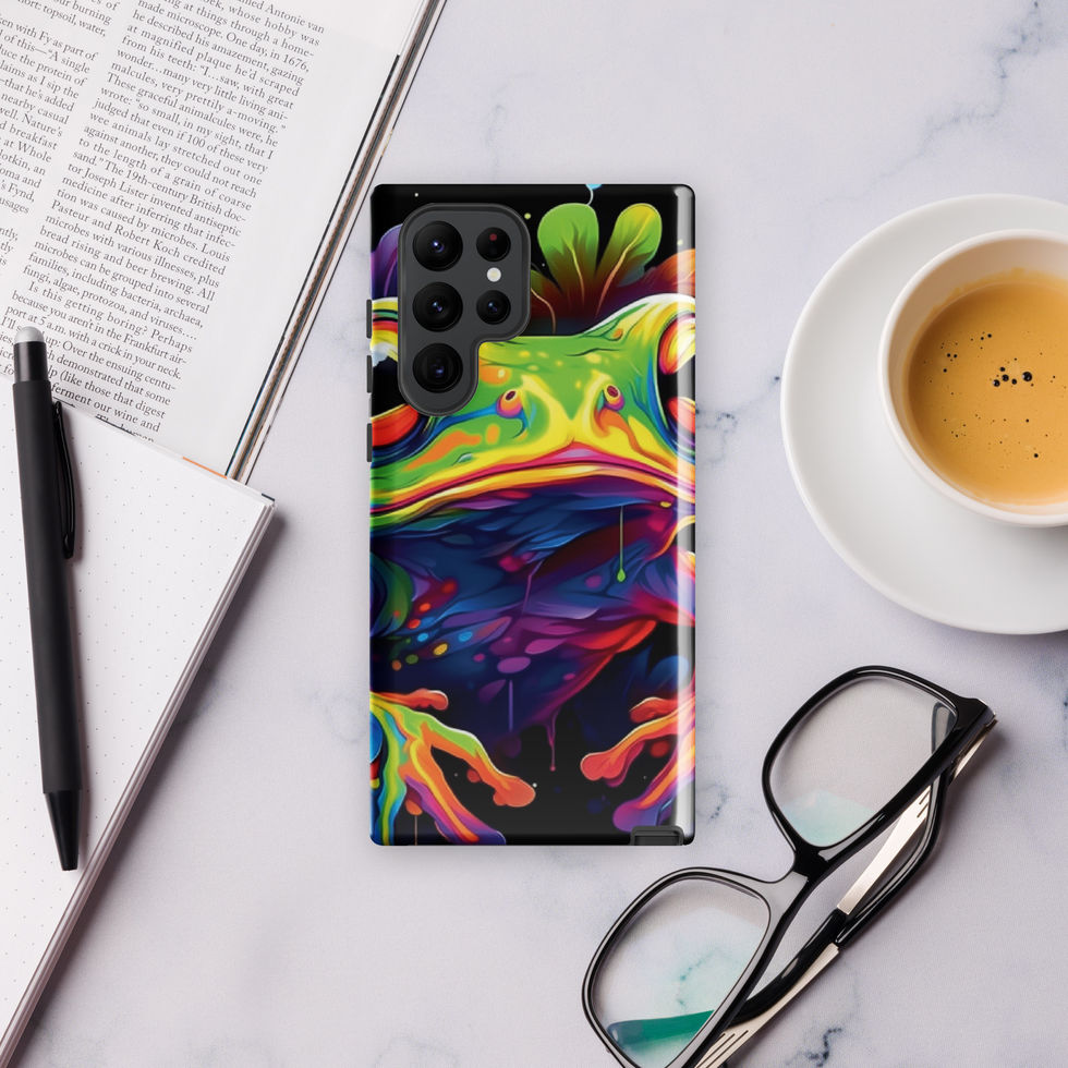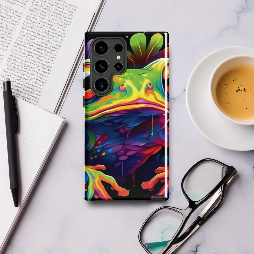 Give your Samsung an exotic twist with the "Neon Hopper" Tough Case! This vibrant case features a dazzling, high-energy tree frog splashed in neon hues, surrounded by a dripping paint effect that makes it look alive. A stunning fusion of nature and digital art, this design is perfect for those who love unique, expressive style with a wild edge. 🌈💚🌆