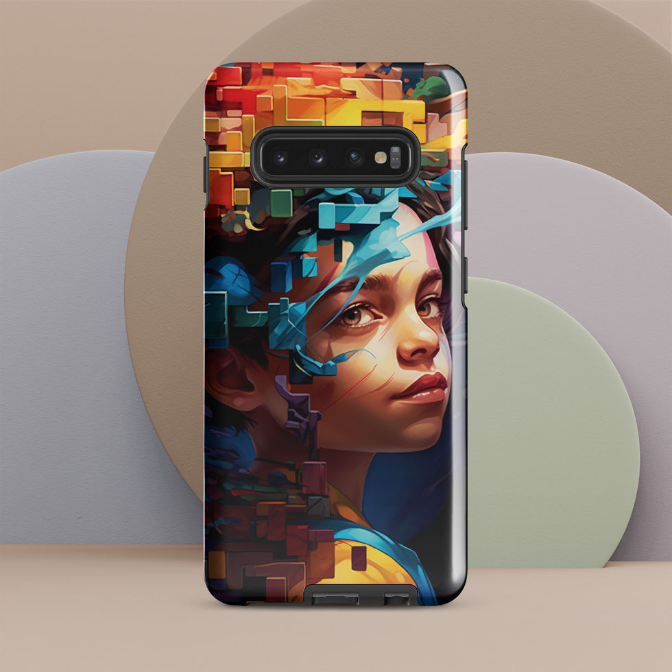 Take your Samsung to the next level with the "Neon Mindscape" tough case! Featuring a dreamer�s mind expanding into a kaleidoscope of glowing puzzle pieces, this design captures the endless journey of ideas and imagination. The striking balance between deep cosmic blues and vibrant neon hues creates a captivating piece that speaks to those who see beyond the ordinary. ??????