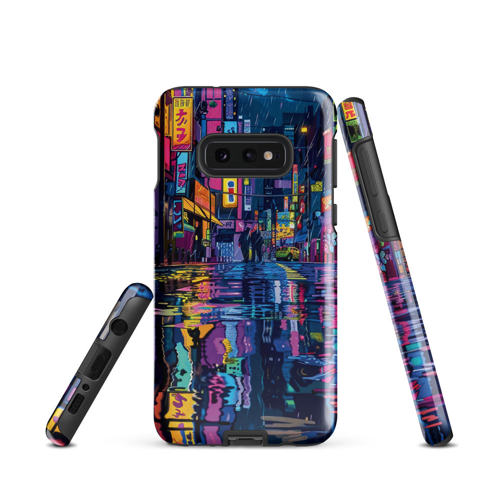 Turn your Samsung into an urban masterpiece with the "Neon Rain" Tough Case! This dynamic artwork showcases a bustling city street after rainfall, where neon-lit buildings, colourful shopfronts, and glowing signs create a dazzling display of reflections. As silhouettes pass by with umbrellas, the energy of the city pulses through every detail. Perfect for fans of neon-drenched cityscapes, sci-fi lovers, and urban adventurers! 🚕💥🌆